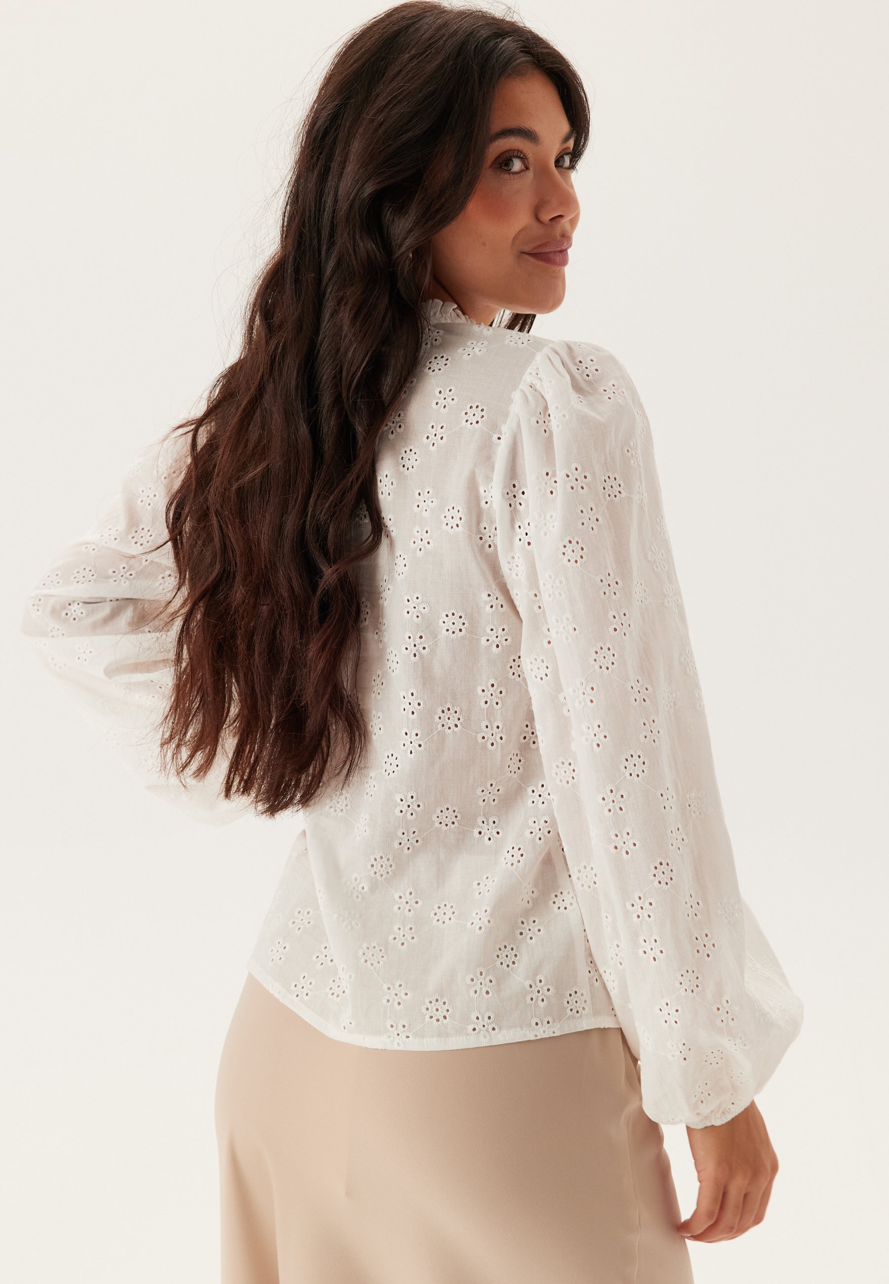 - Balloon sleeves with elastic on the sleeve ends.