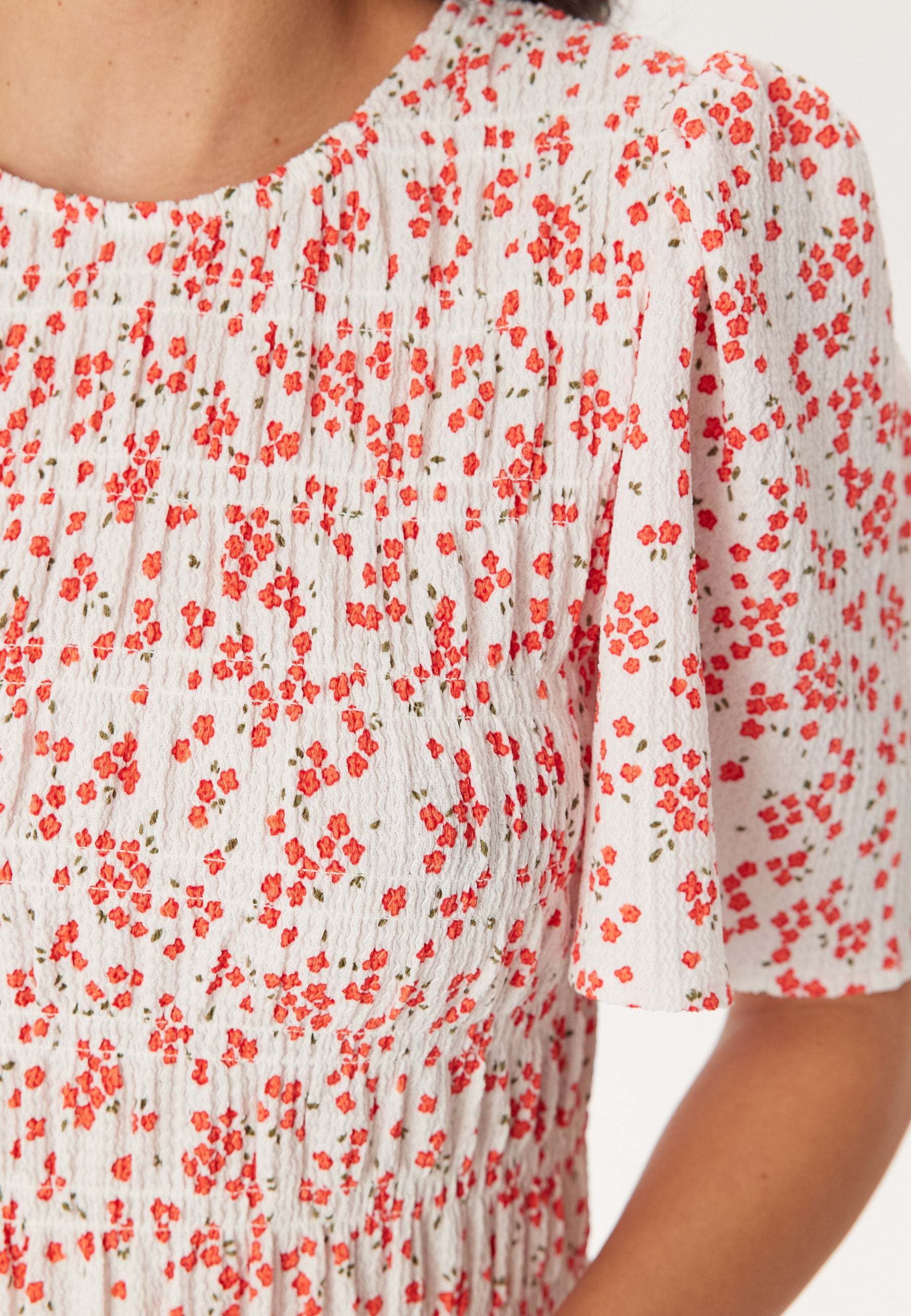 - Gathered detail at the shoulder