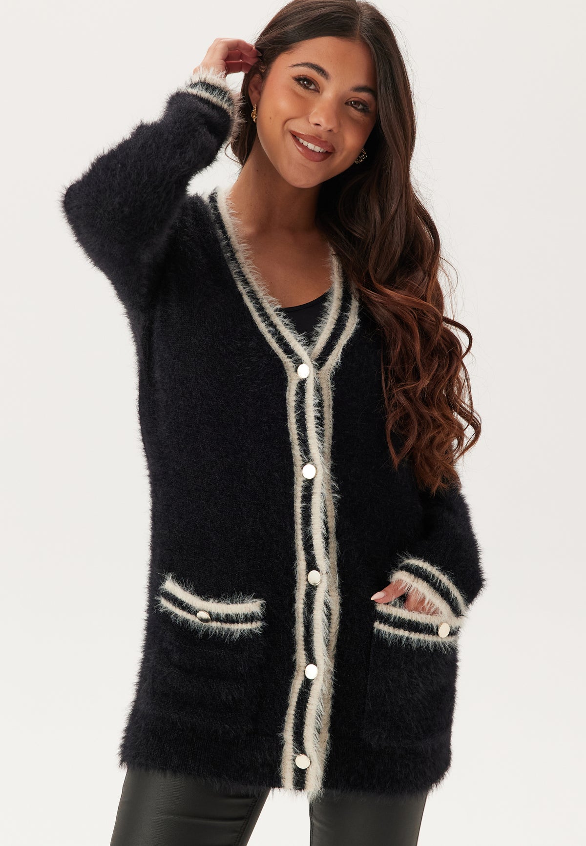 Contrast Fluffy Knitted Cardigan
