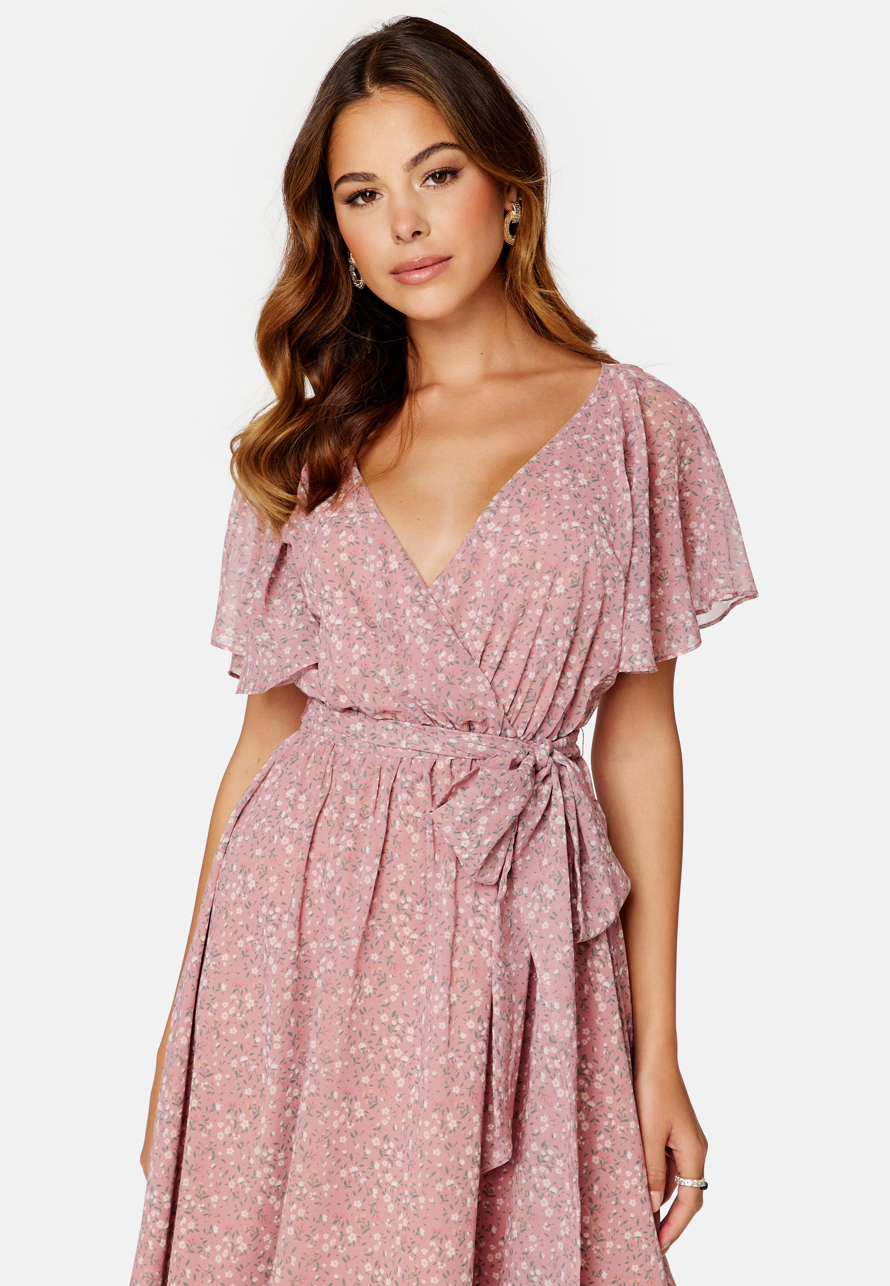 Ditsy Flutter Sleeve Midi Dress