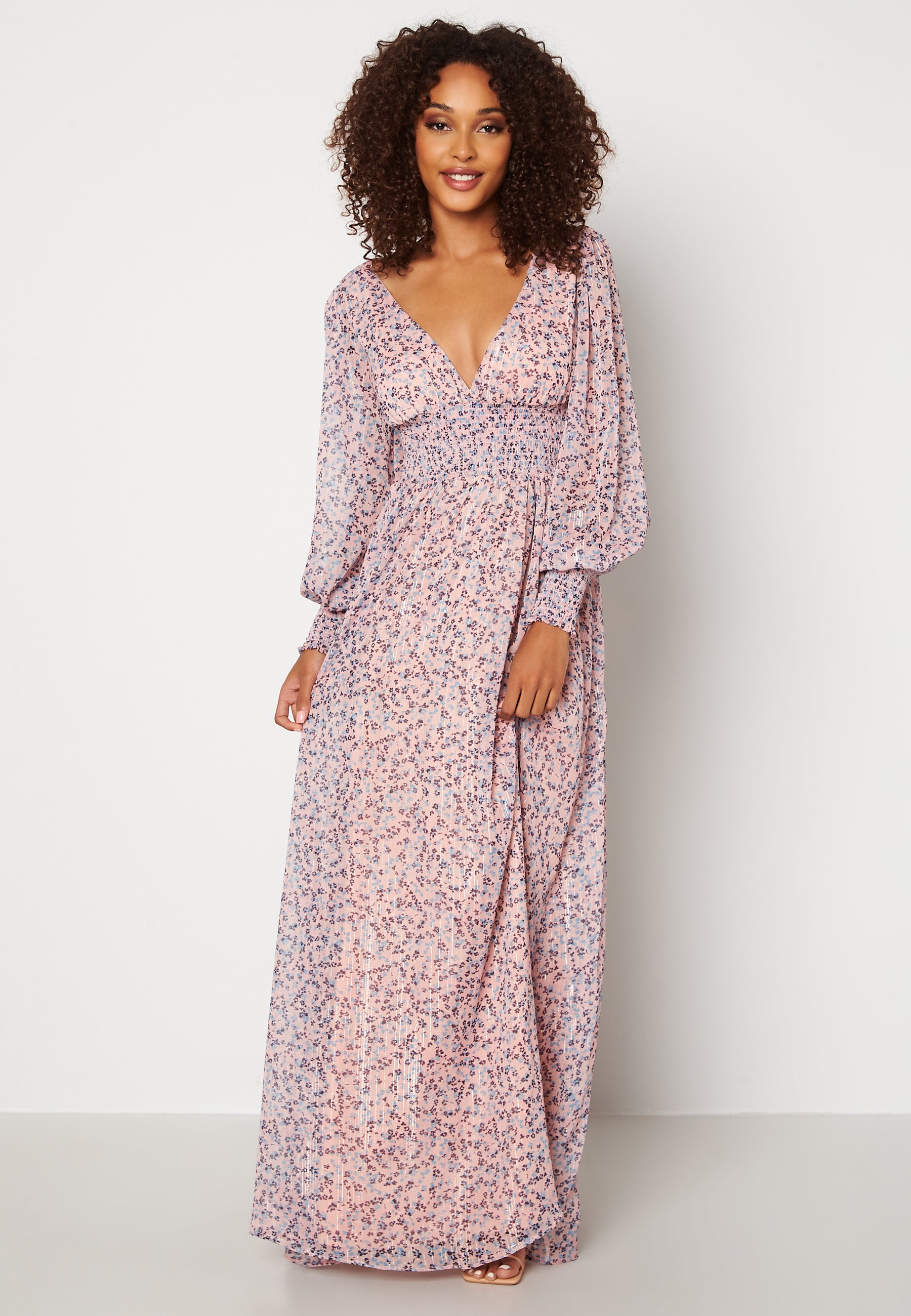 - Smocked defined waist.