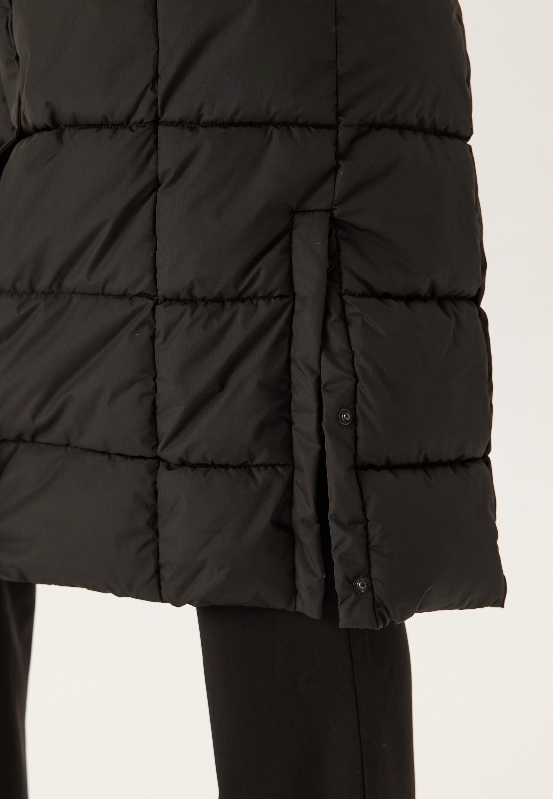 - Side slits with hidden snap buttons