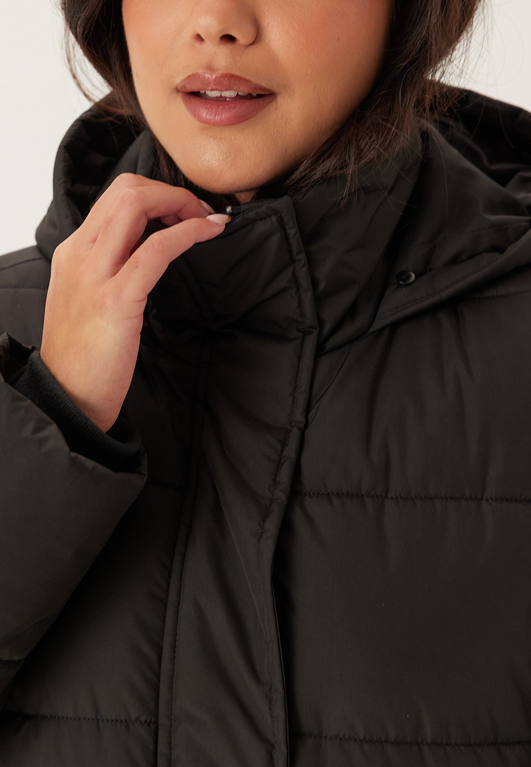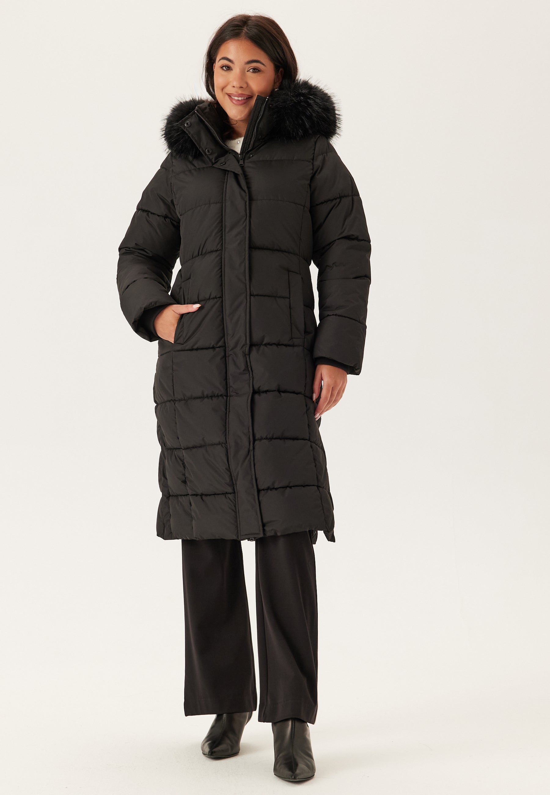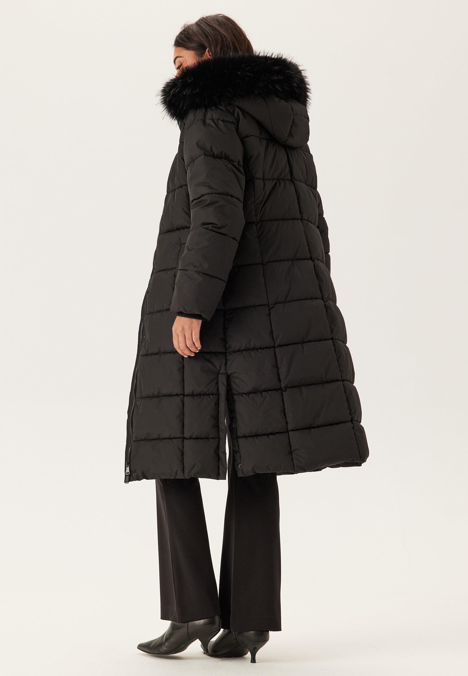 - Hood with a detachable faux fur
