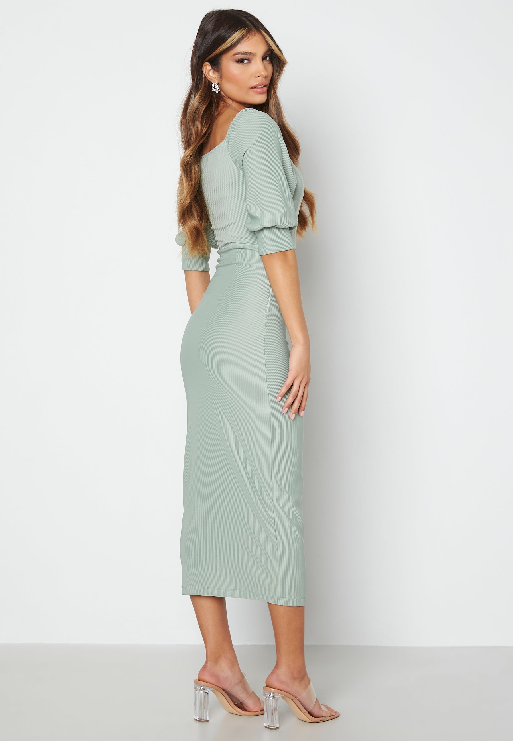 Beautiful midi dress by BUBBLEROOM with puff sleeve.