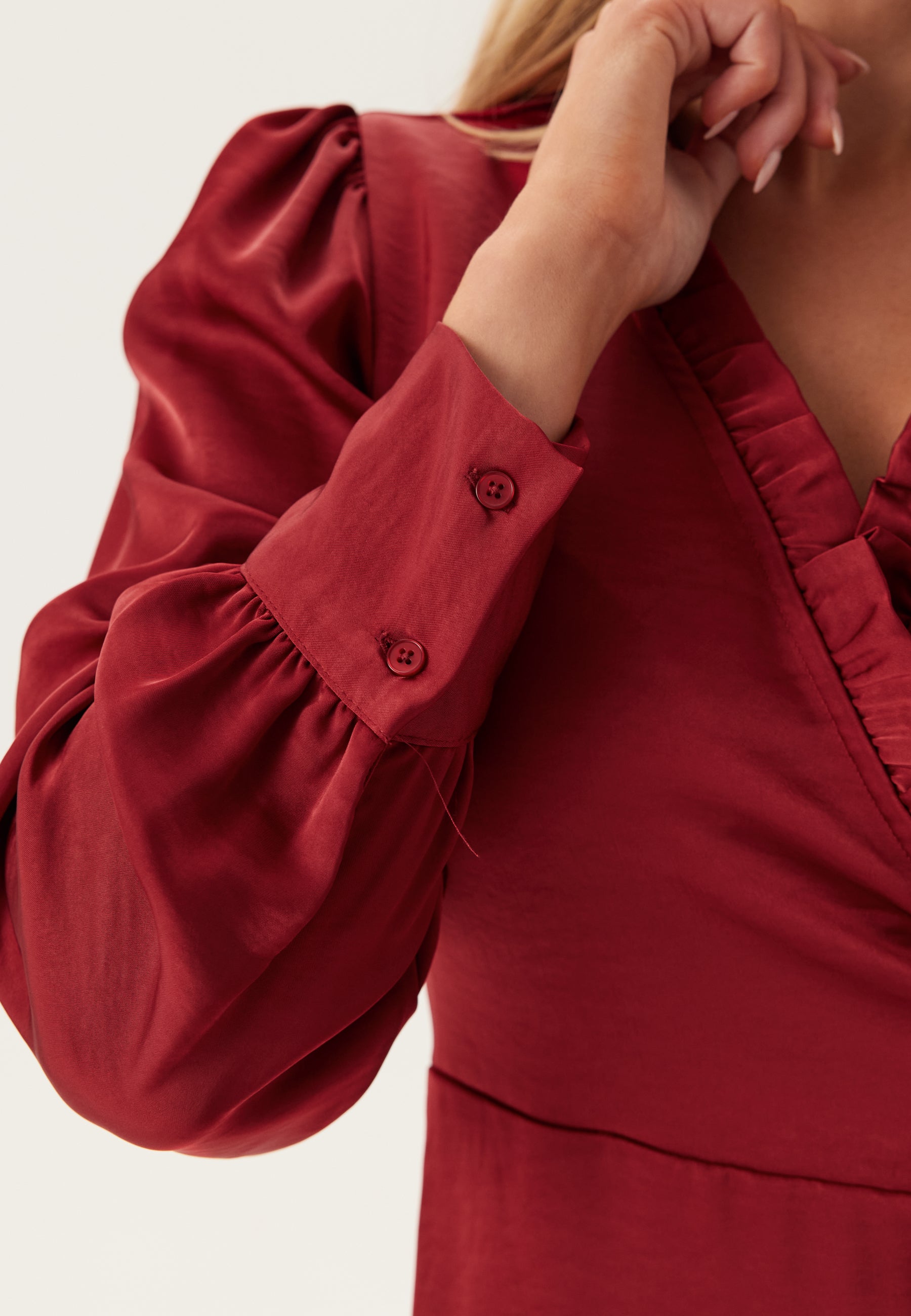 - Flounced detail on the neckline