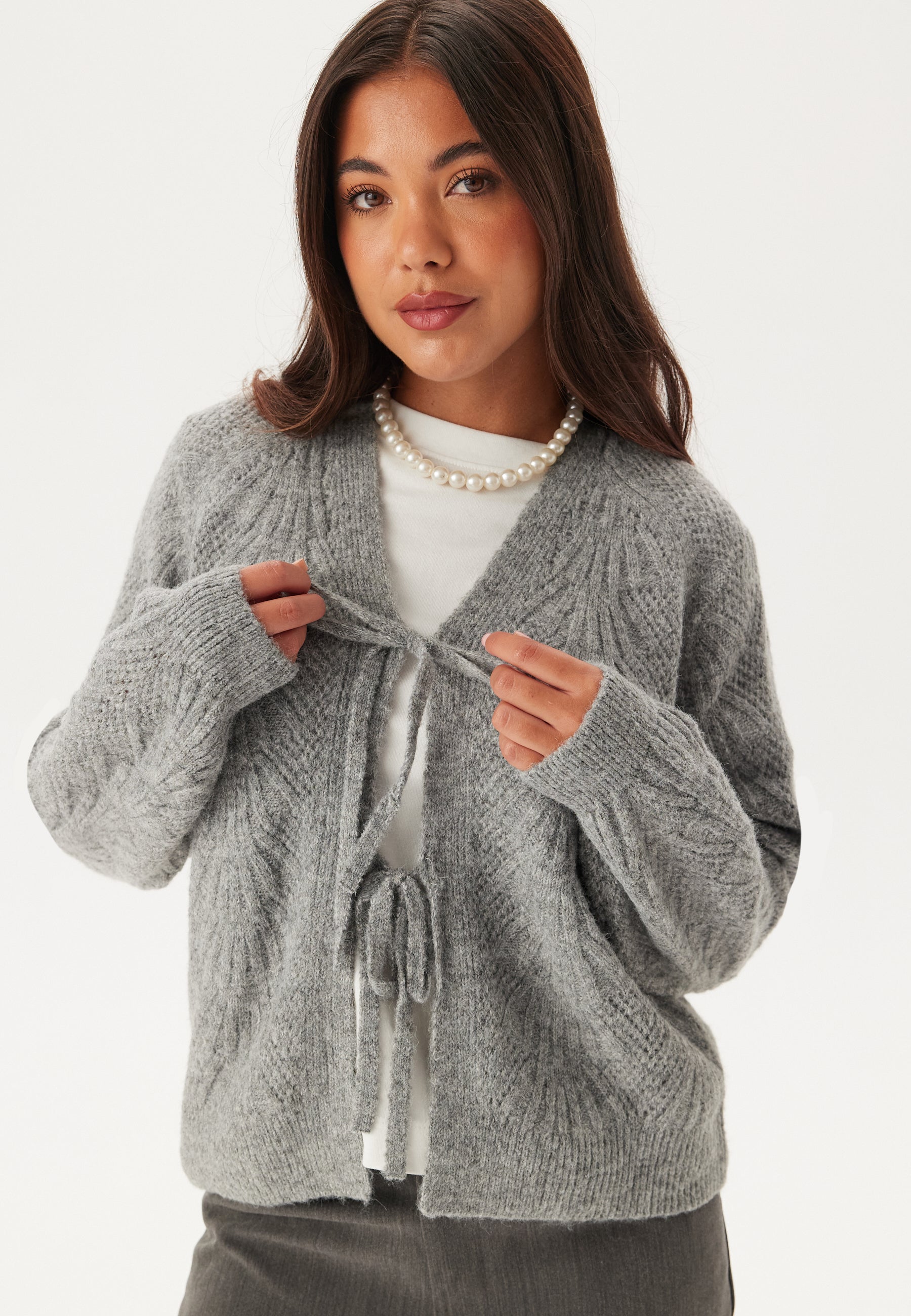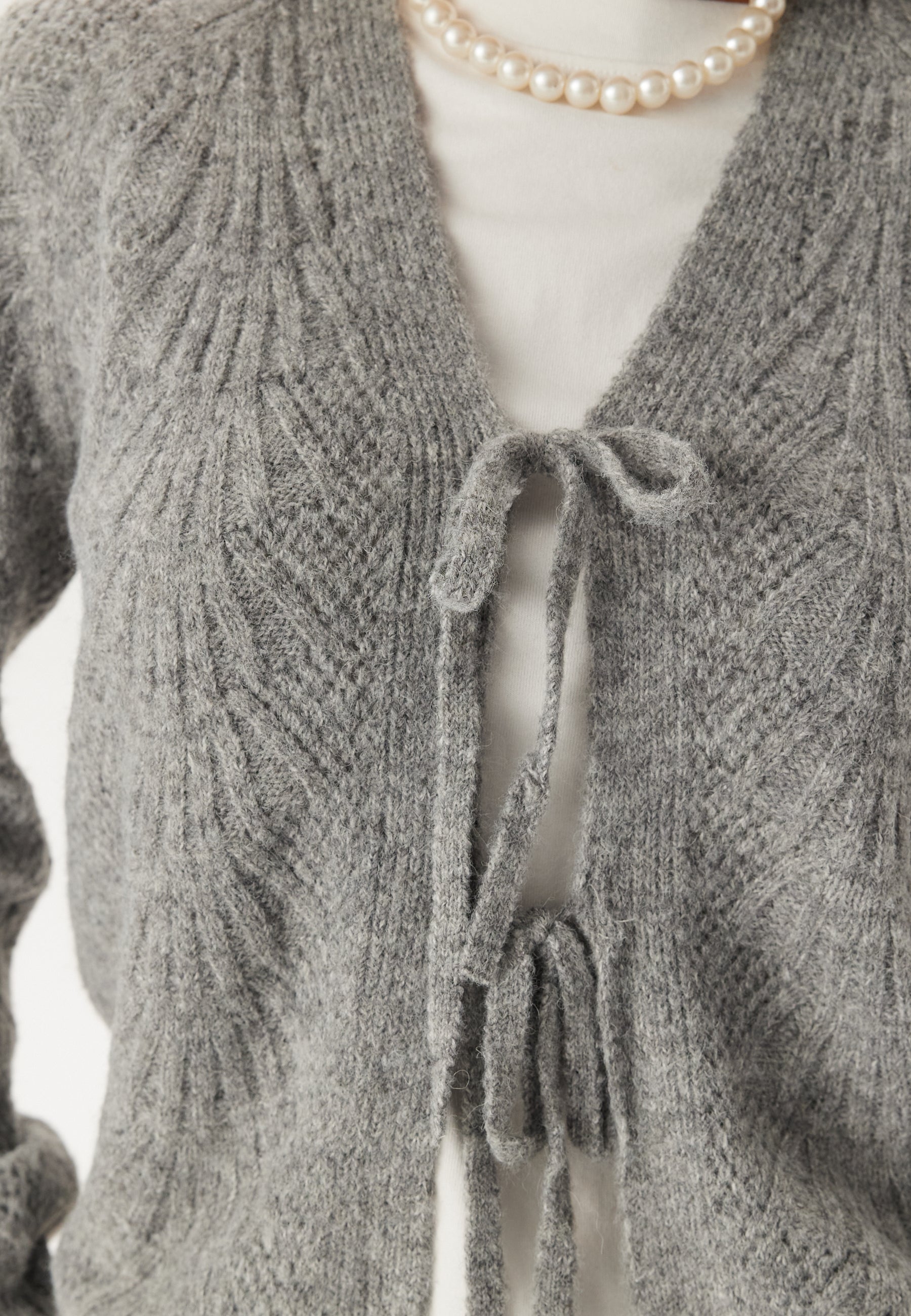 - String tie closure at the front.