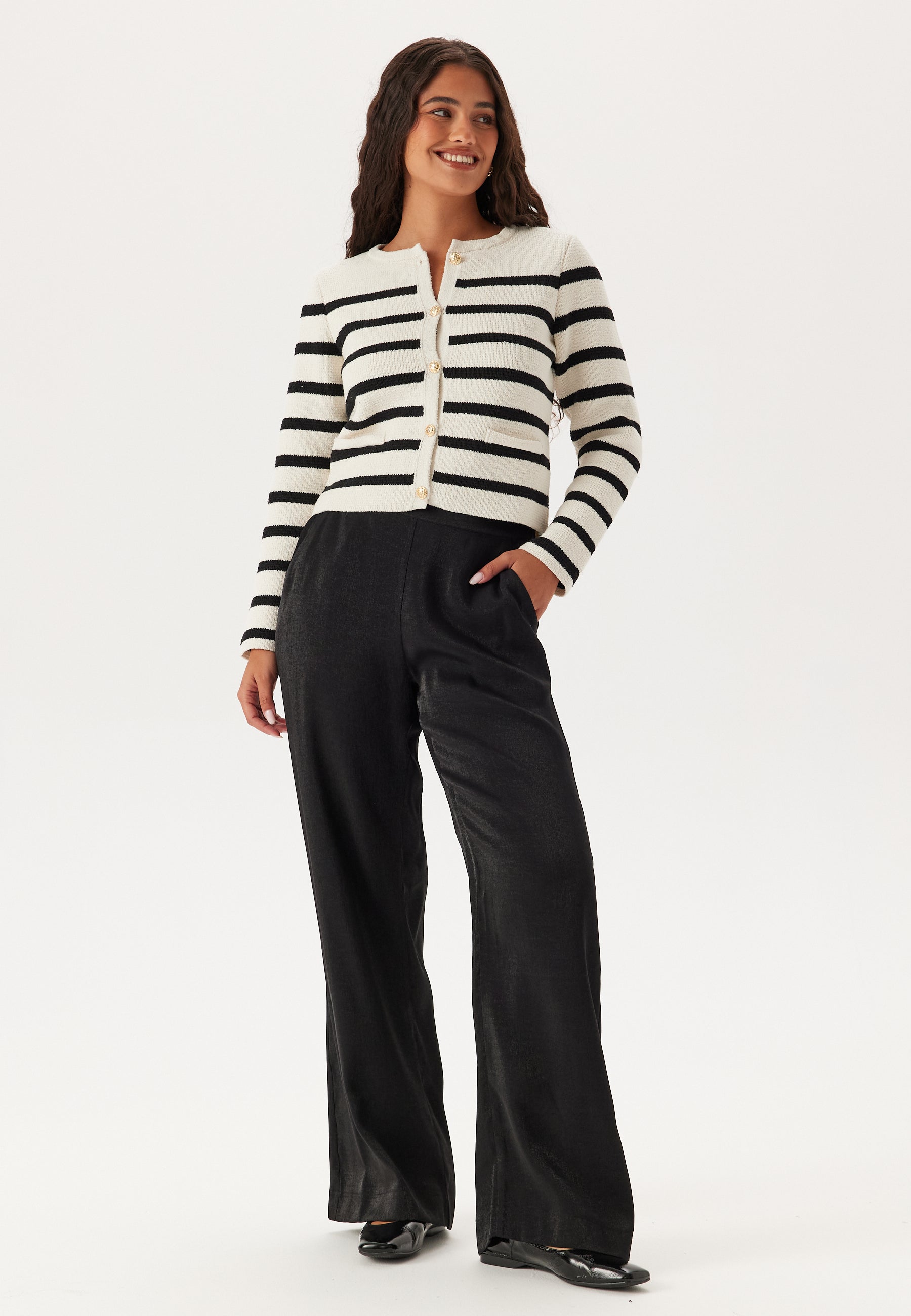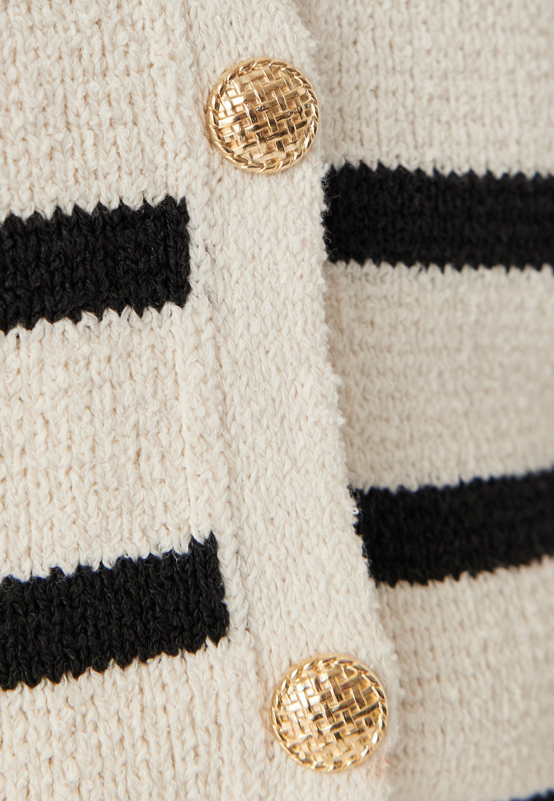 - Button closure at the front with gold-coloured metallic buttons.