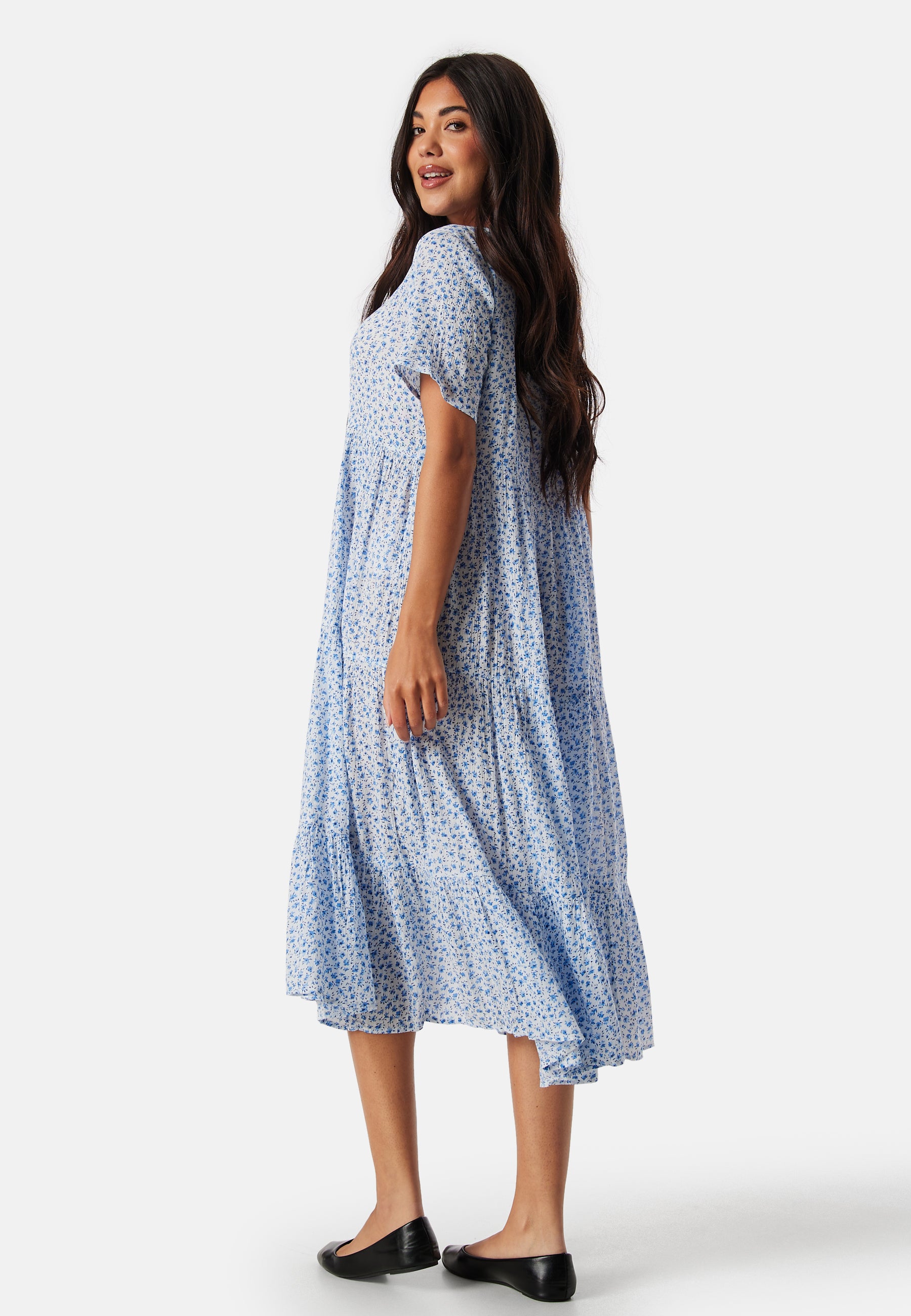 - Flounced detail at the bottom.