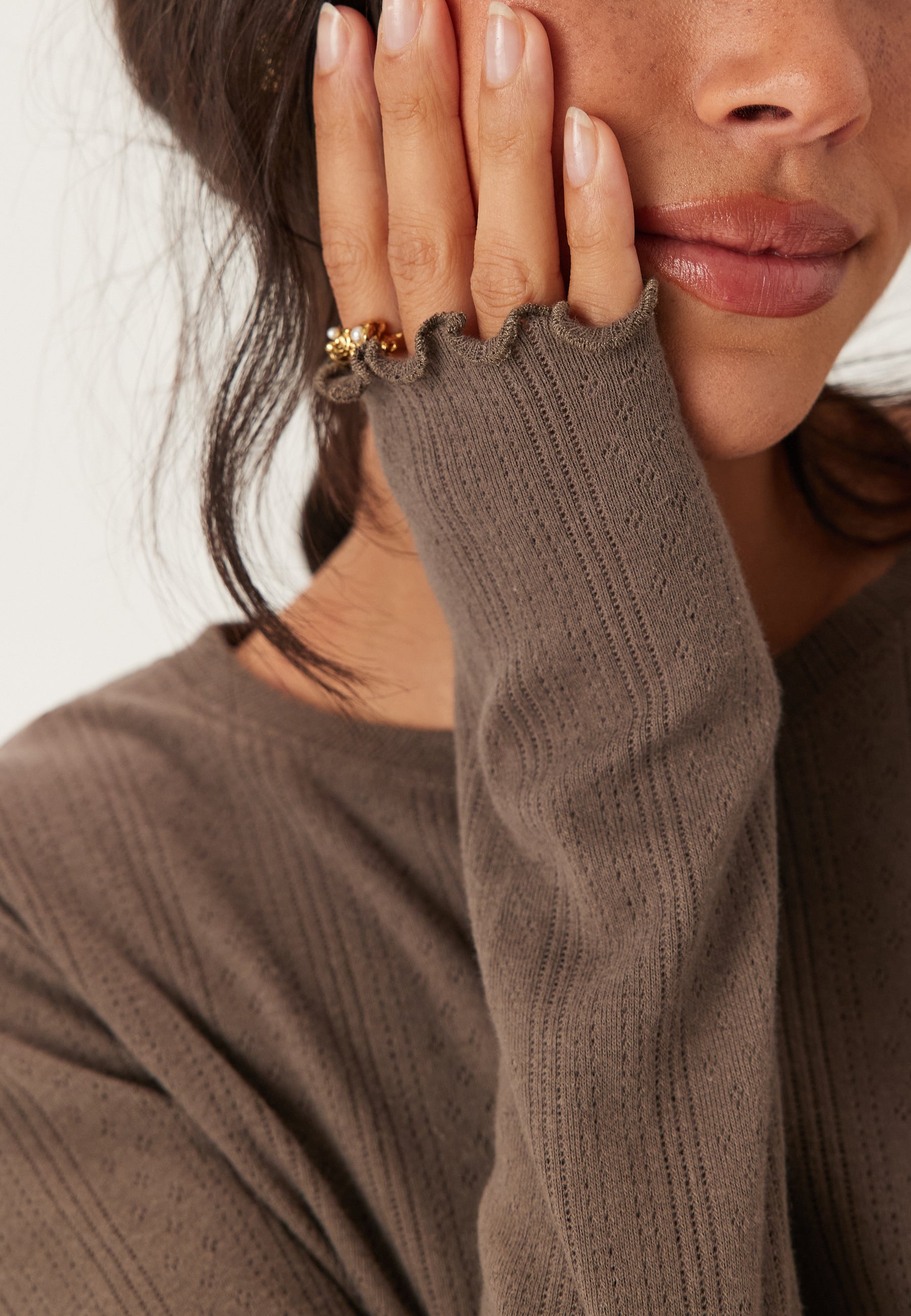 Long sleeve top by Pieces with pointelle pattern