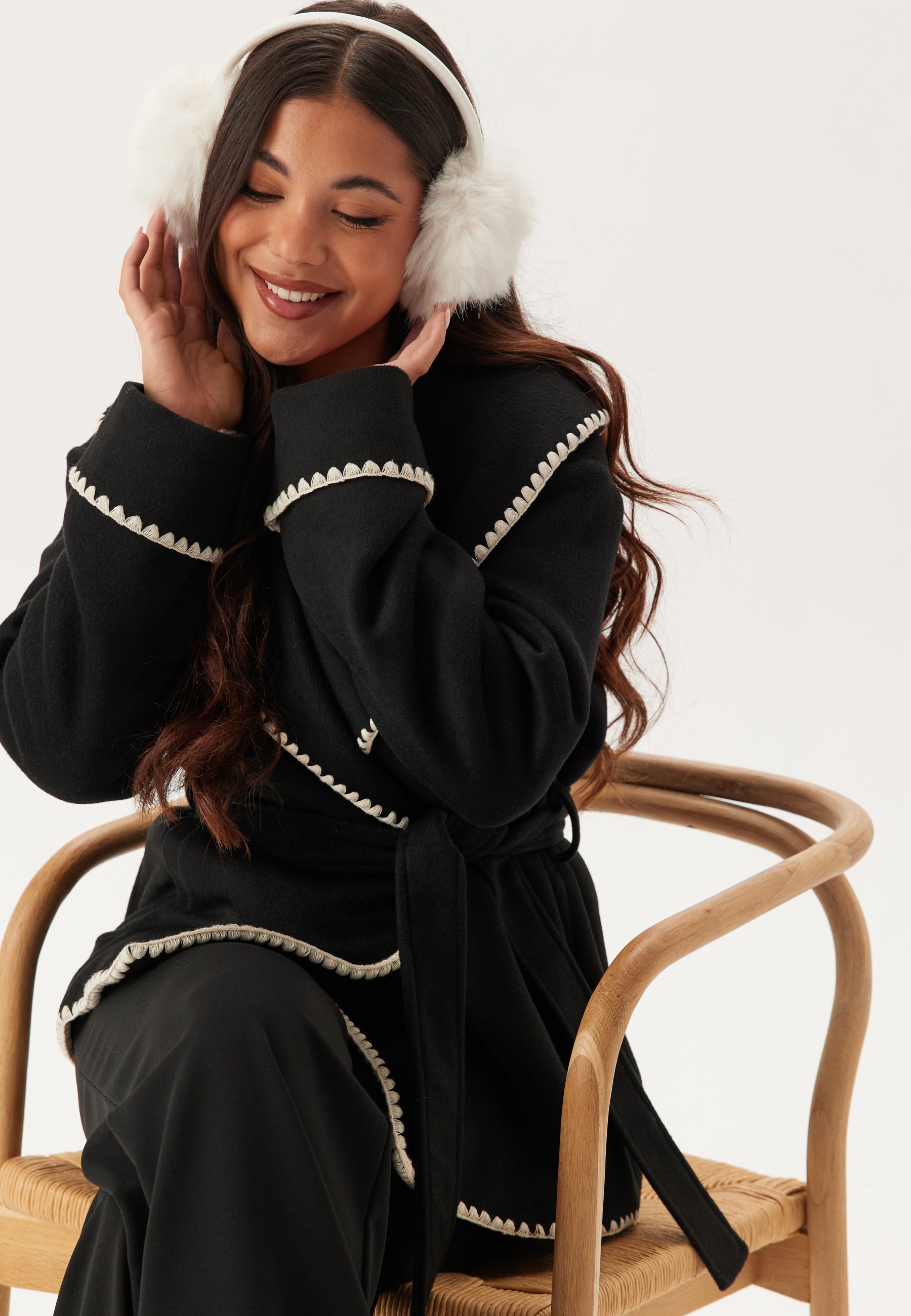 - Decorative, banded stitchings.