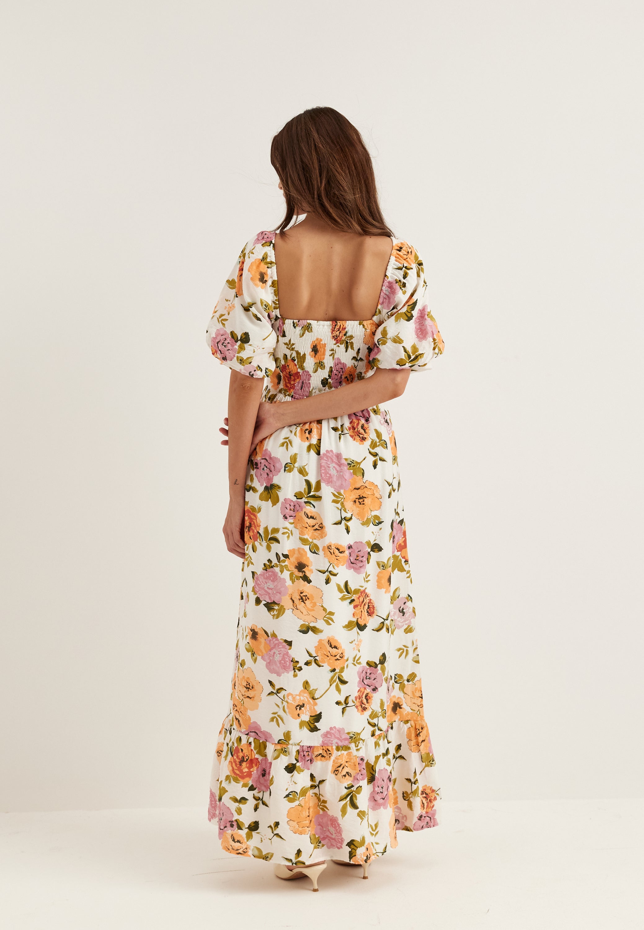 - Squared neckline