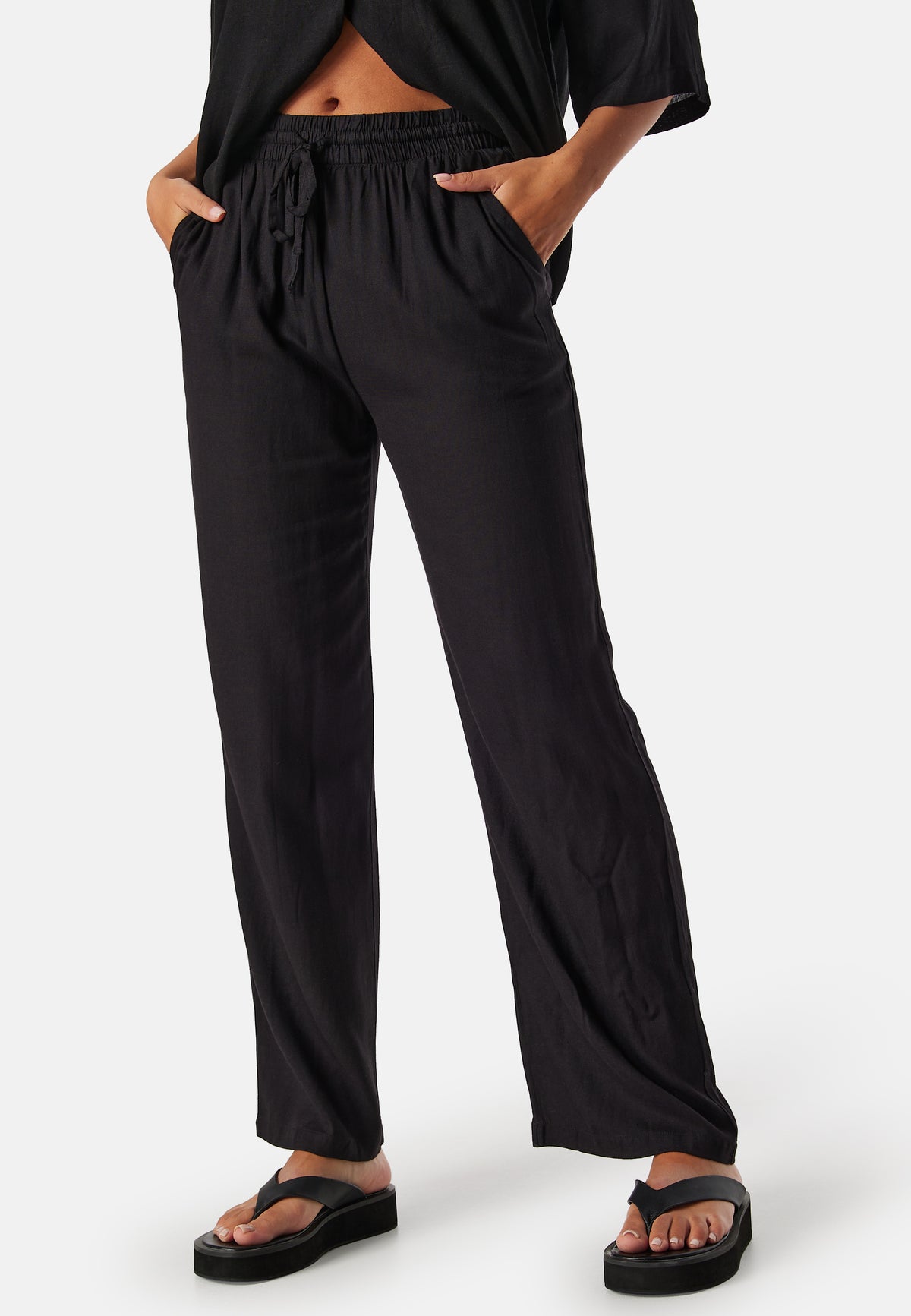 - Elastic at the waist with drawstring.