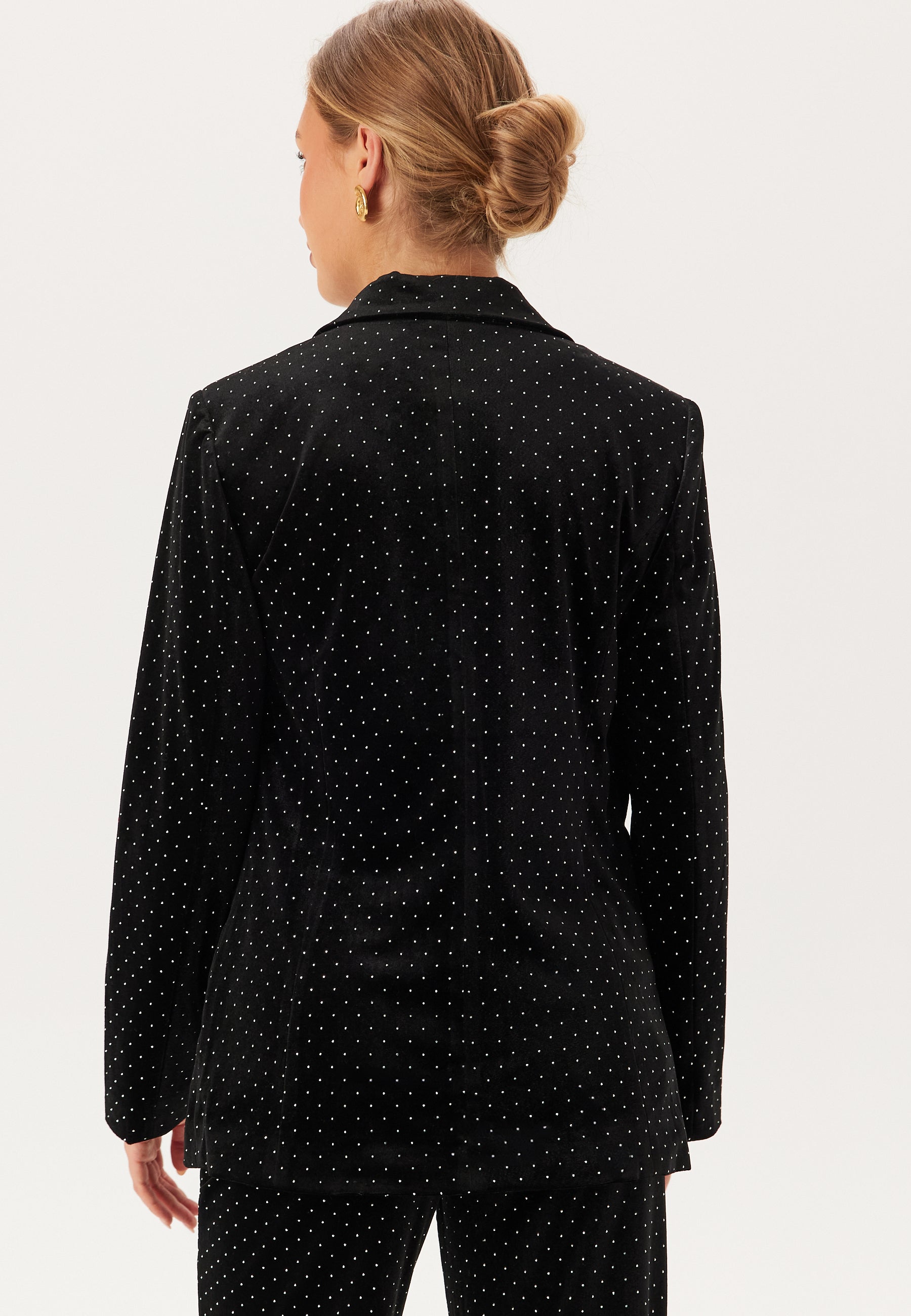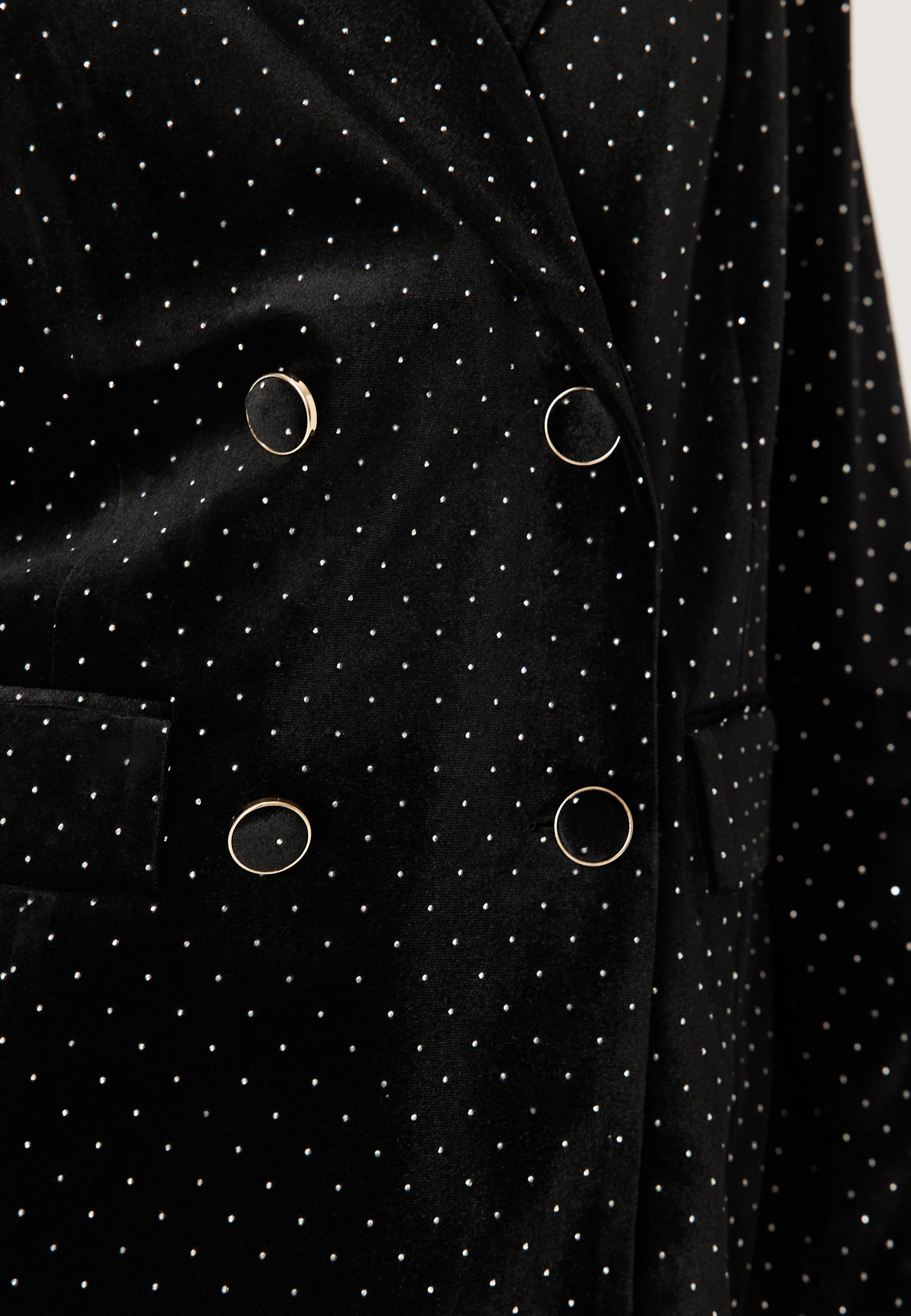 - Slightly stretchy velvet fabric with rhinestone details.
