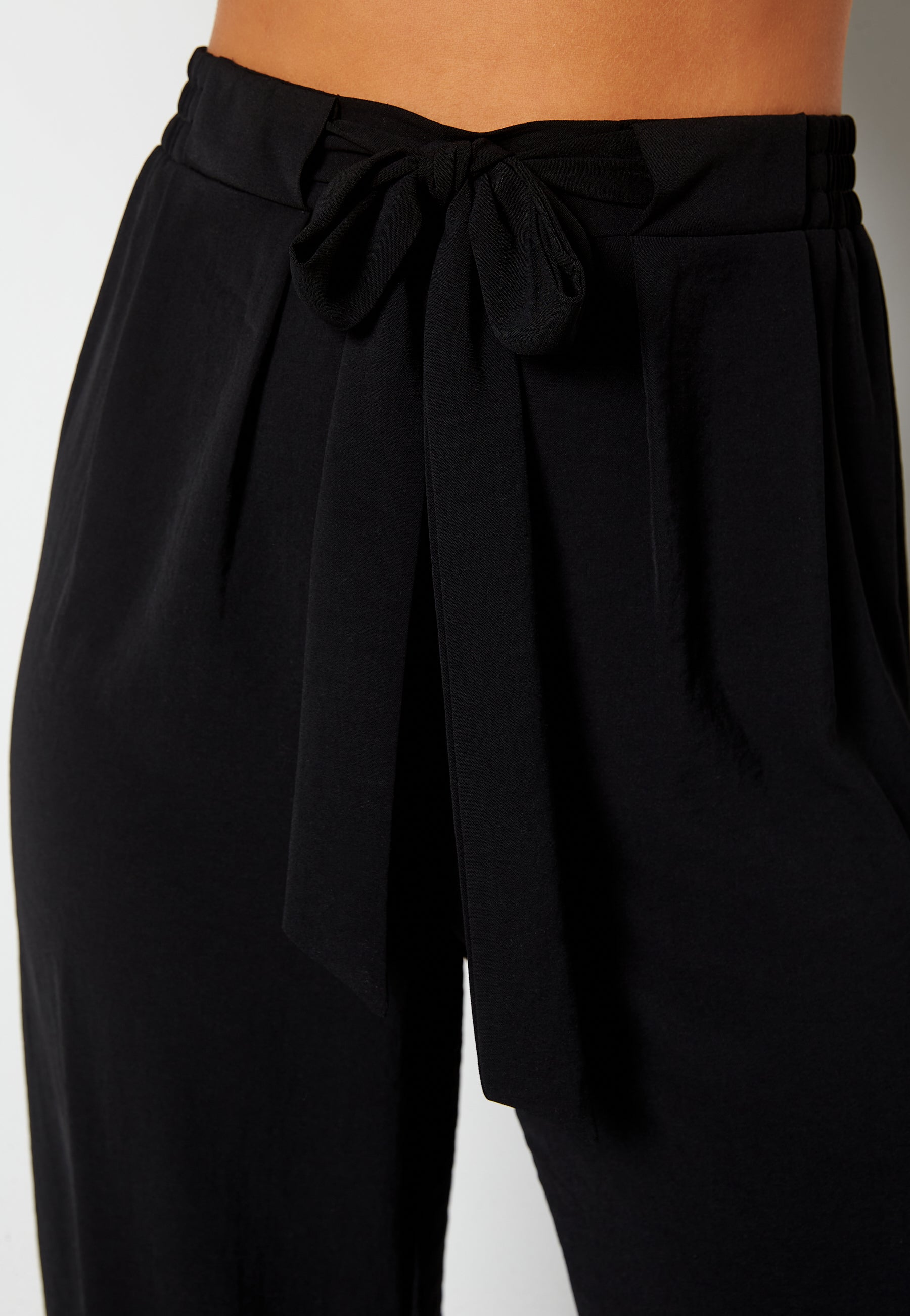 - Elastic at the waist with non removable tie string at the front.
