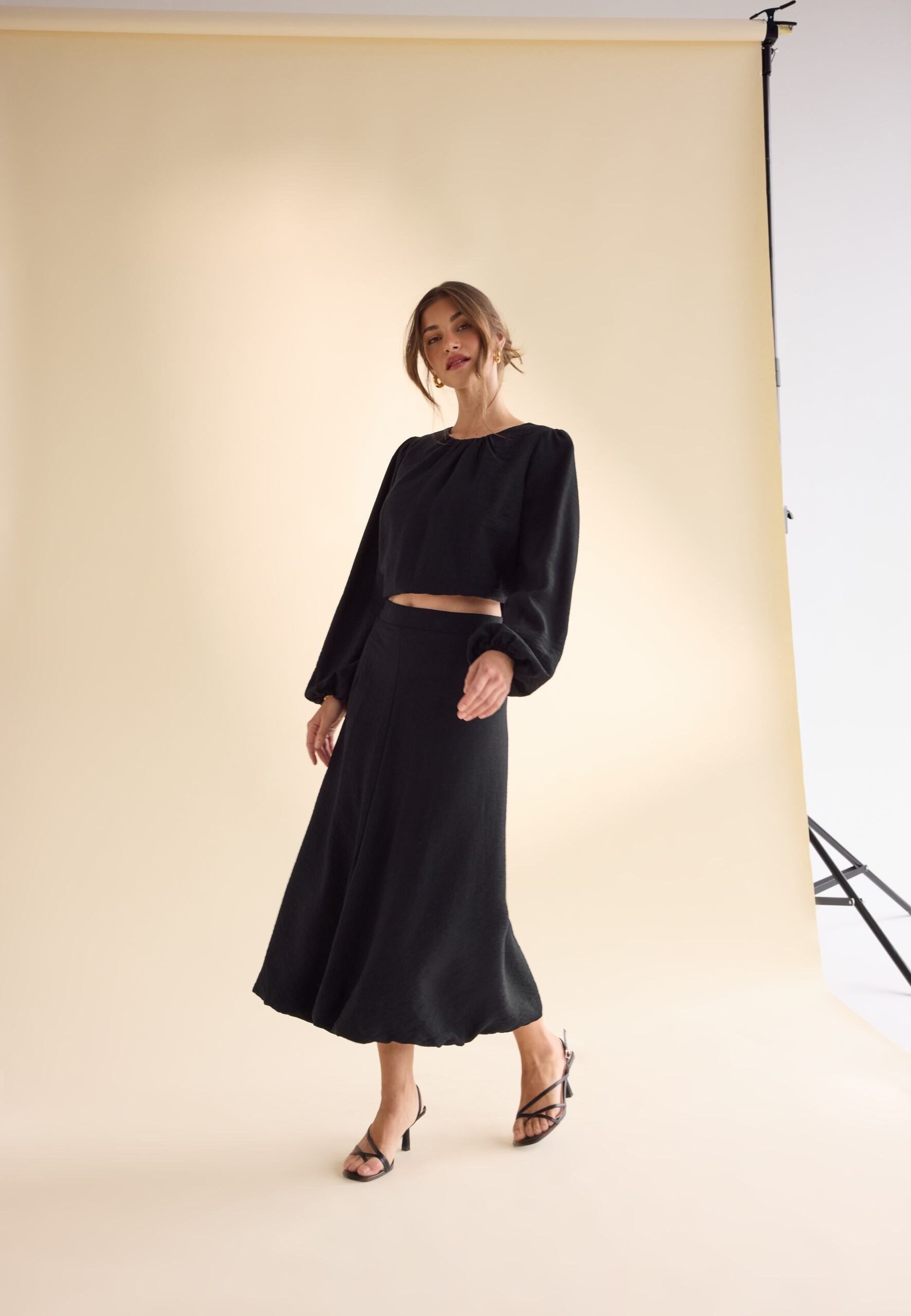 Bubble Hem Midi Skirt