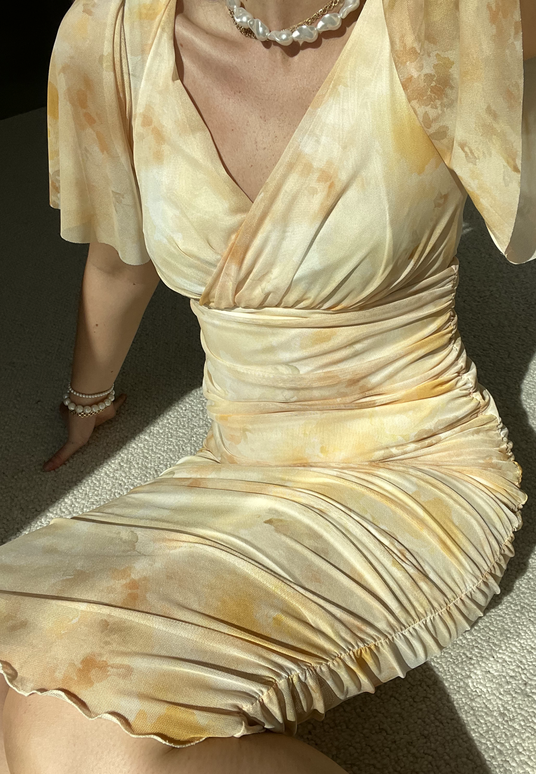 Butterfly Sleeve Mesh Ankle Dress