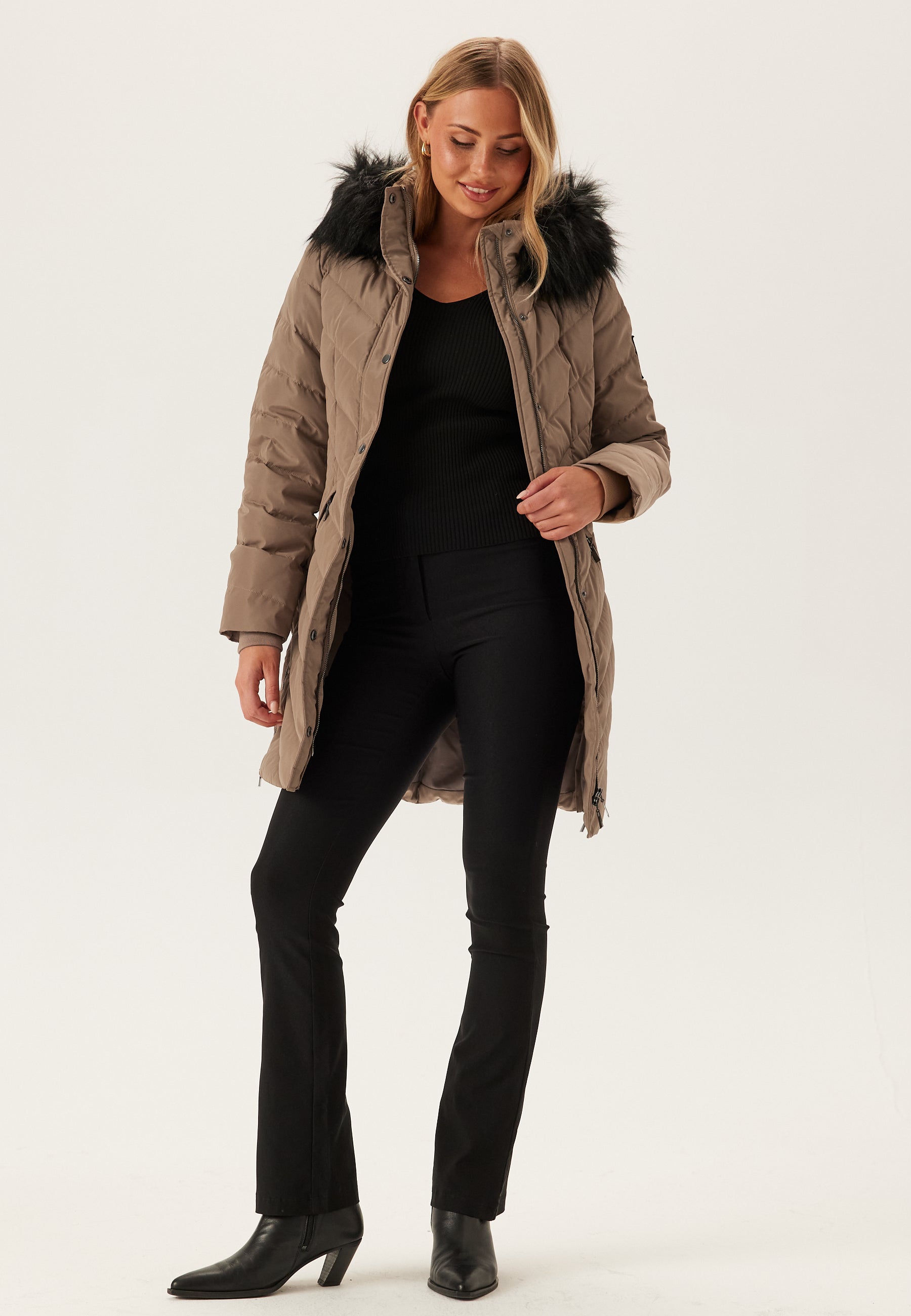 - Huppu irrotettavalla tekoturkiksella