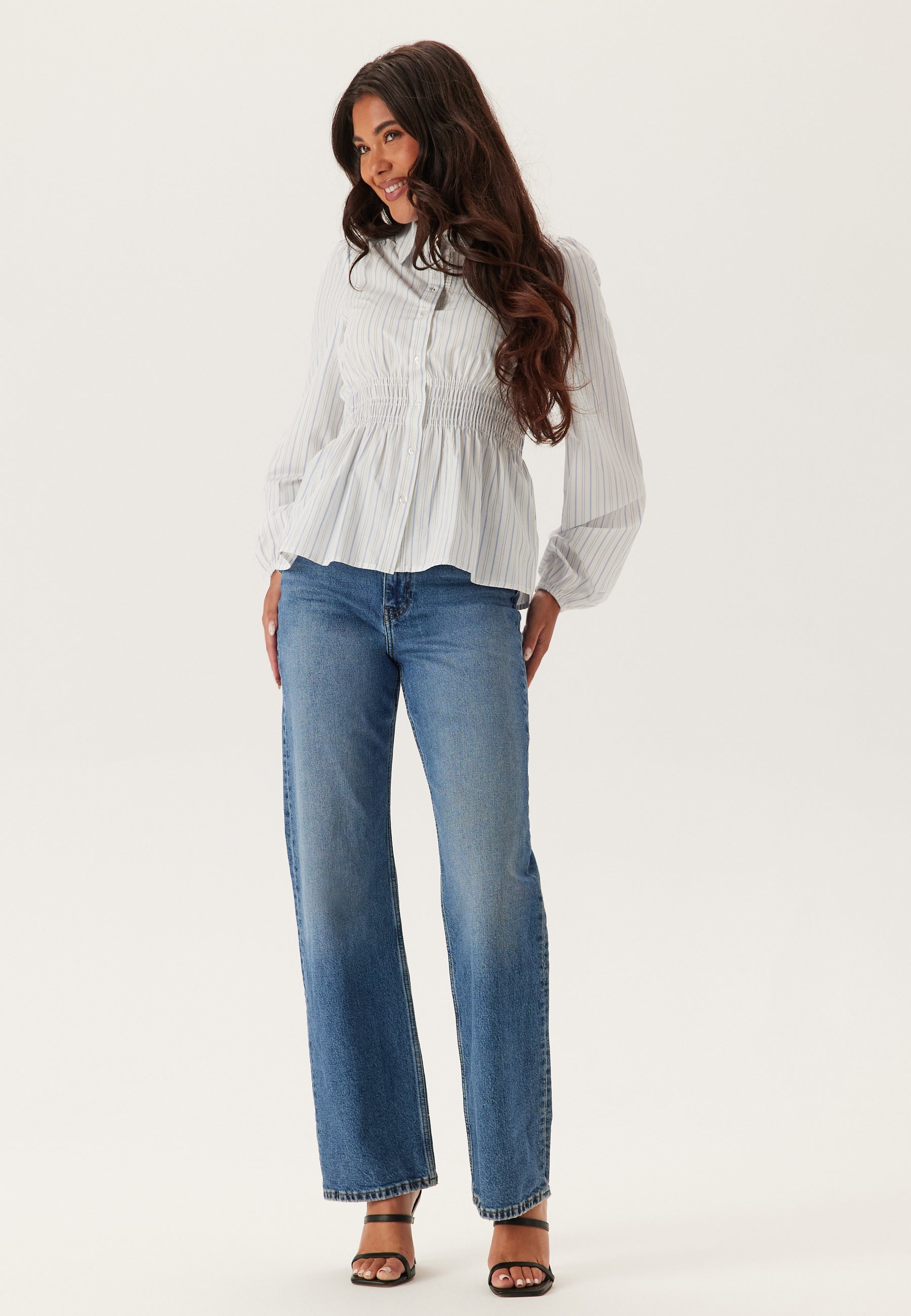 - Vartaloa myötäilevä malli ylhäällä suorilla jaloilla