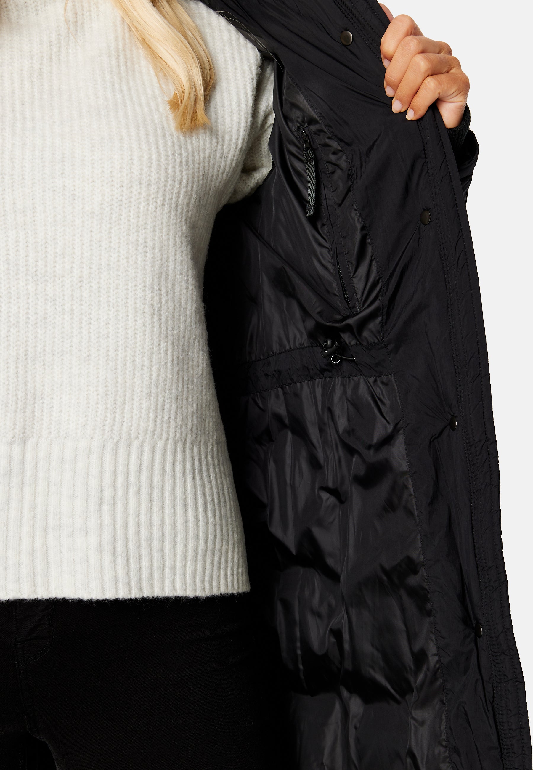 - Topattu huppu kiristysnyörillä