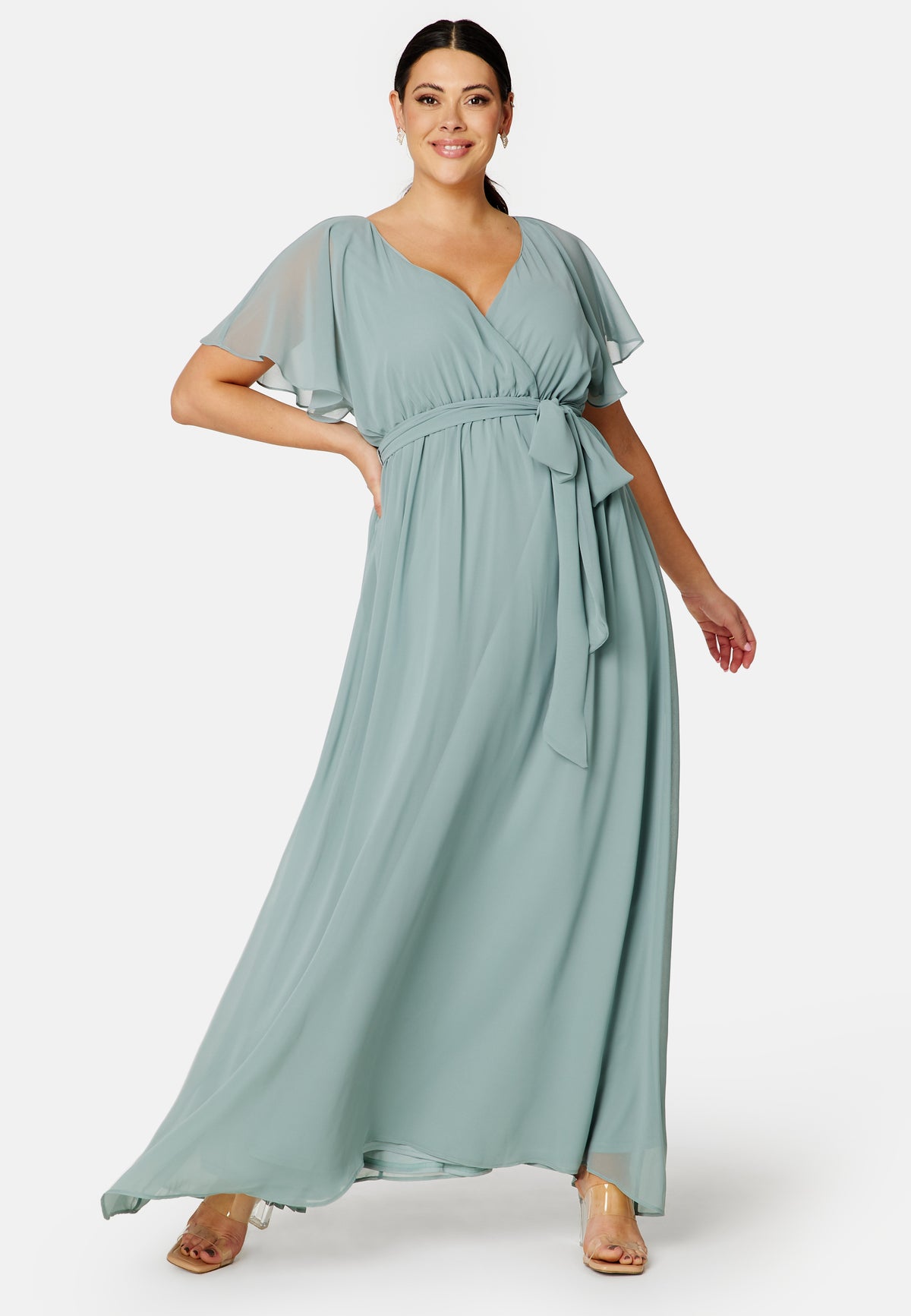 Flutter Sleeve Chiffon Maxi Curve Dress
