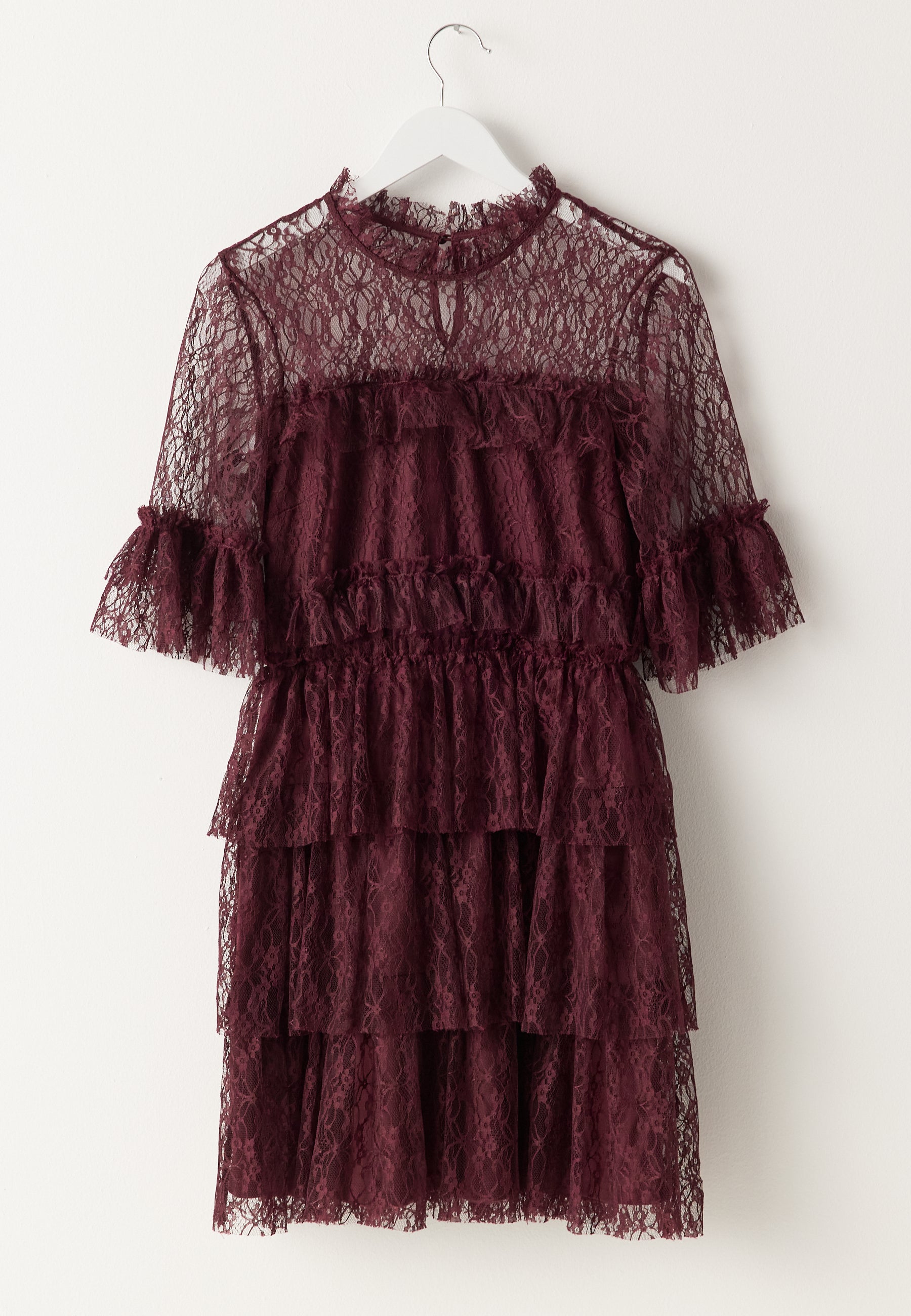 - Pyöristetty kaula-aukko röyhelökauluksella