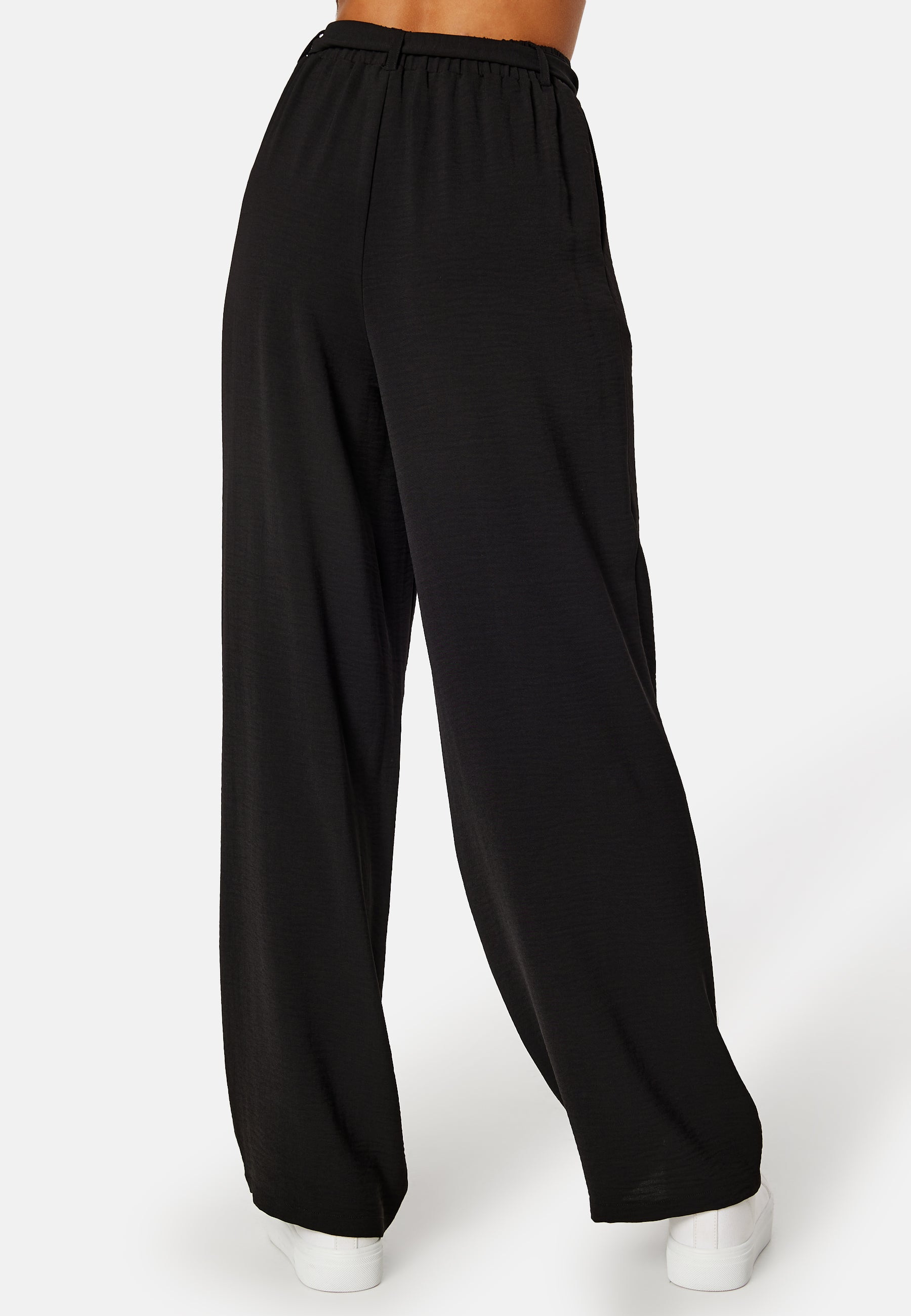 Trendikkäät leveät lahkeet BUBBLEROOM-tuotemerkiltä solmunauhalla vyötäröllä.
