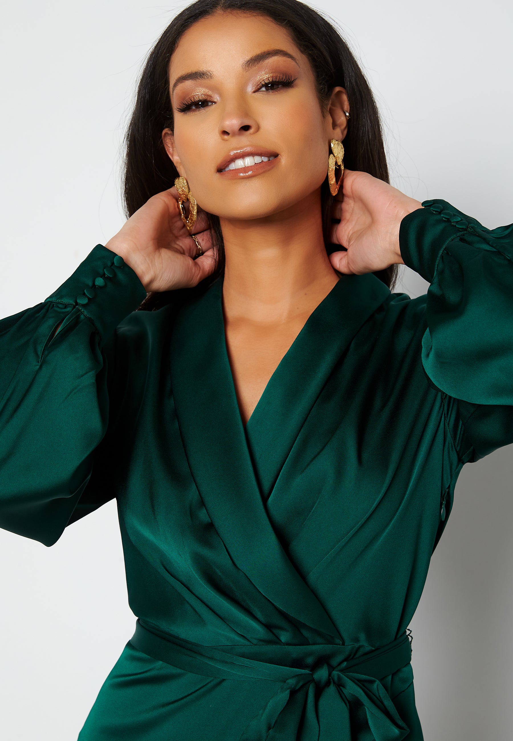 Hieno, röyhelöinen mekko satiinista.