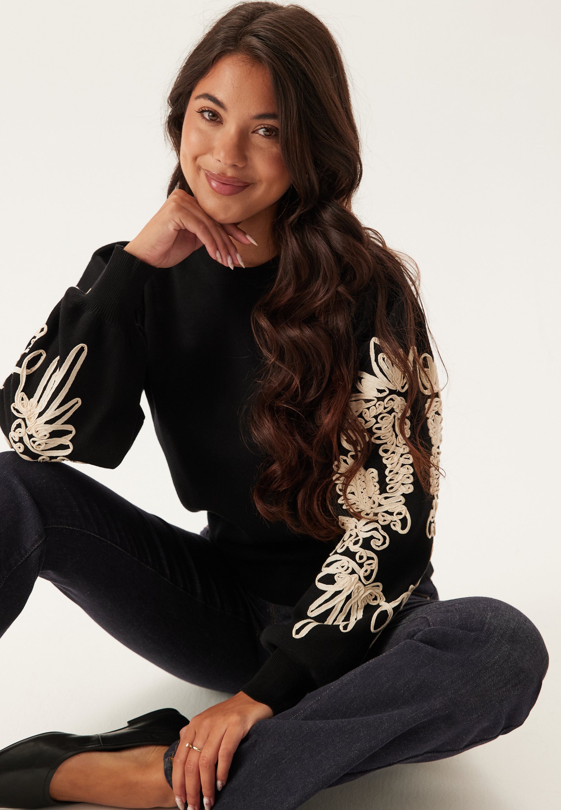 - Kiinniommellut koristeet hihoissa