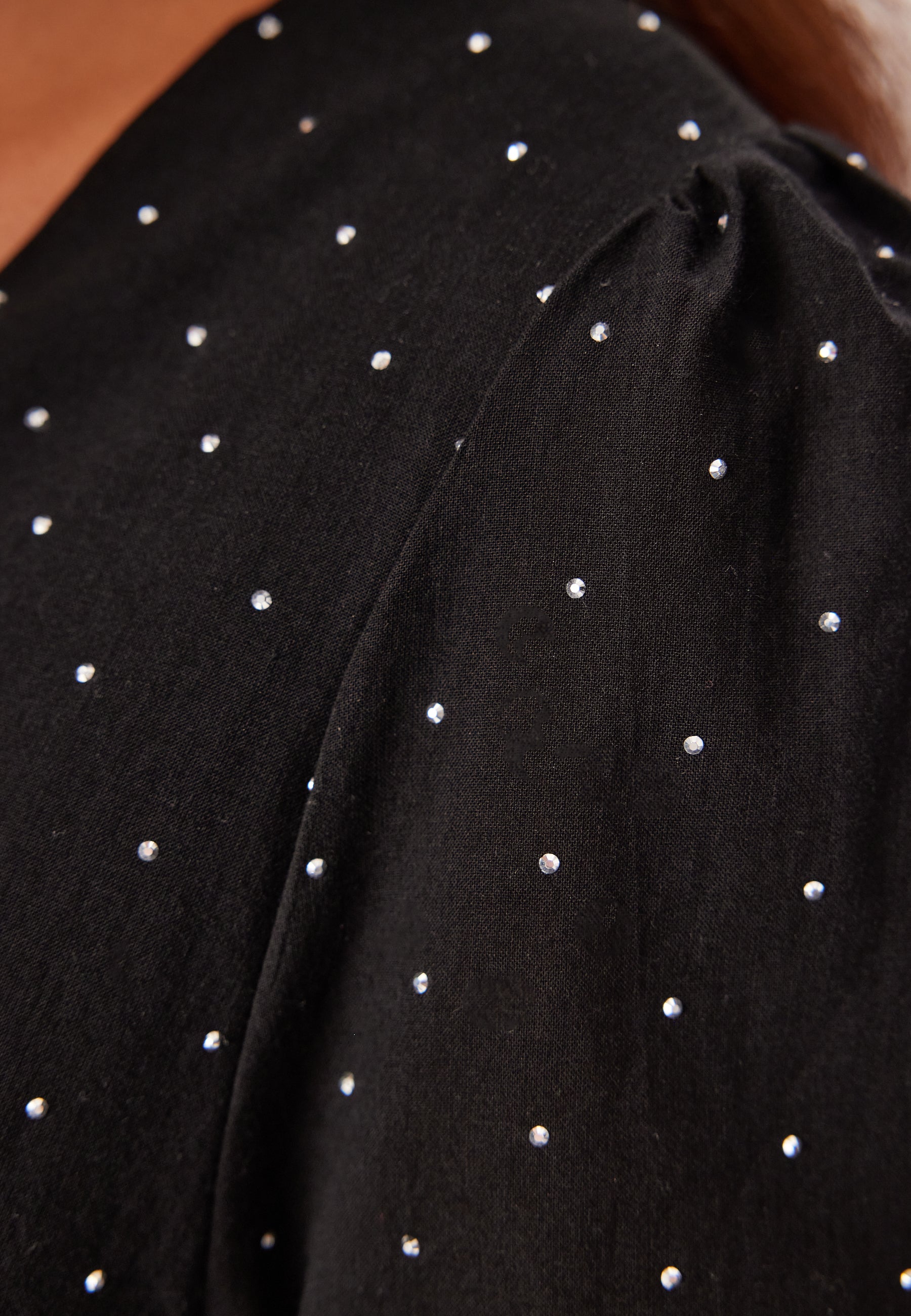 - Kudottu, joustamaton materiaali kimaltelevilla yksityiskohdilla.