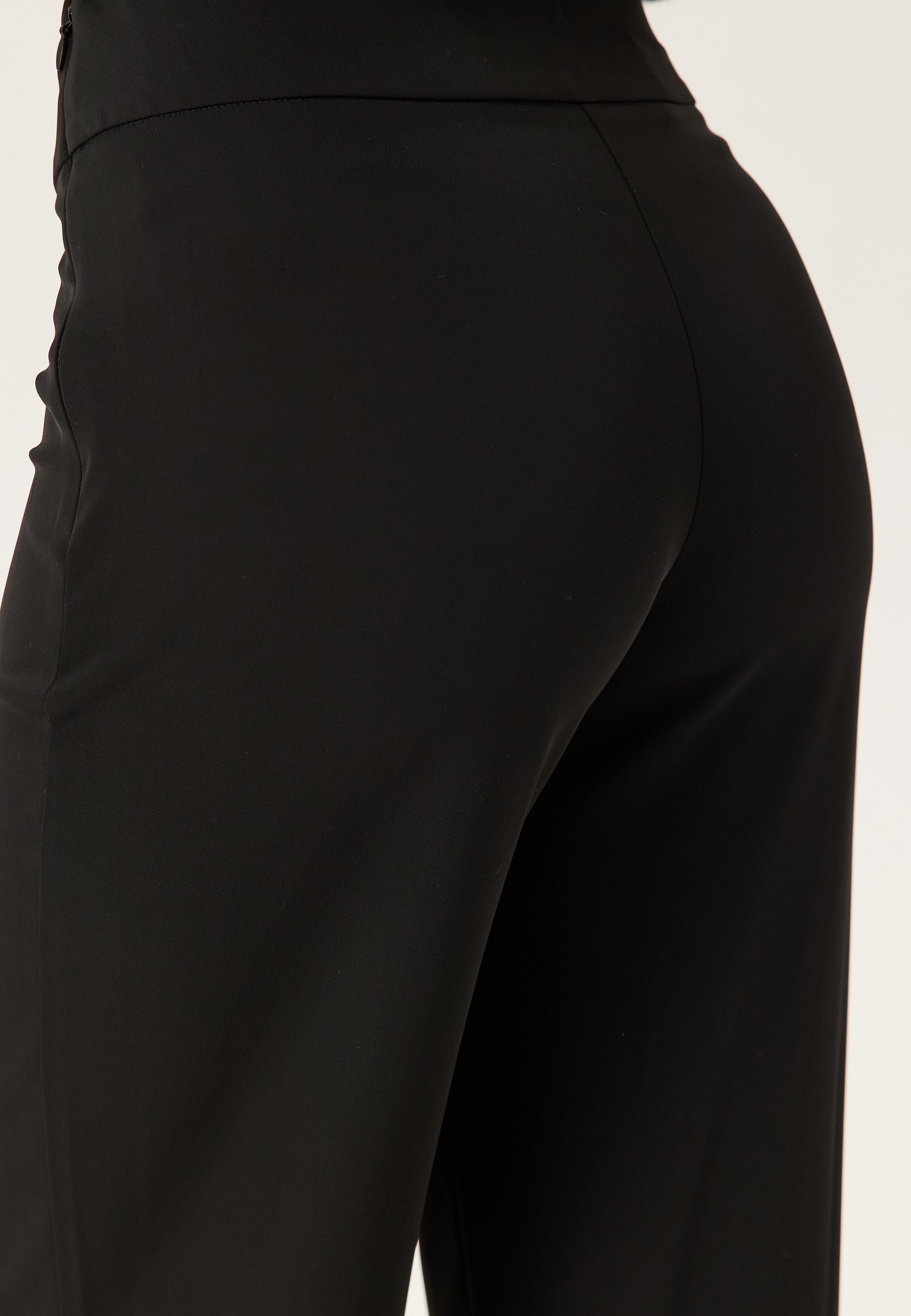 - Vartalonmyötäinen istuvuus ylhäällä leveillä lahkeilla.