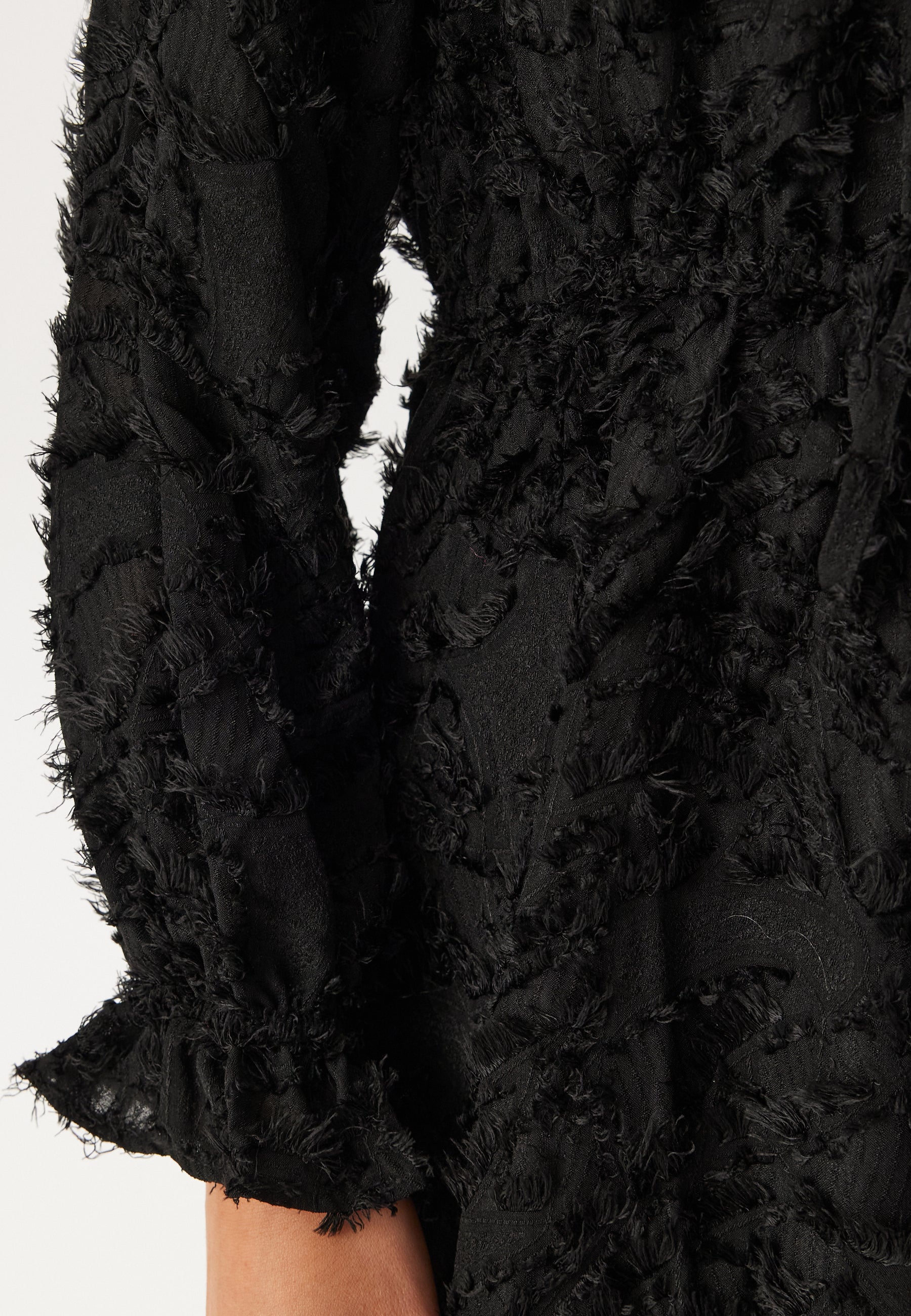 - Pitkä hiha kuminauhalla alareunassa.