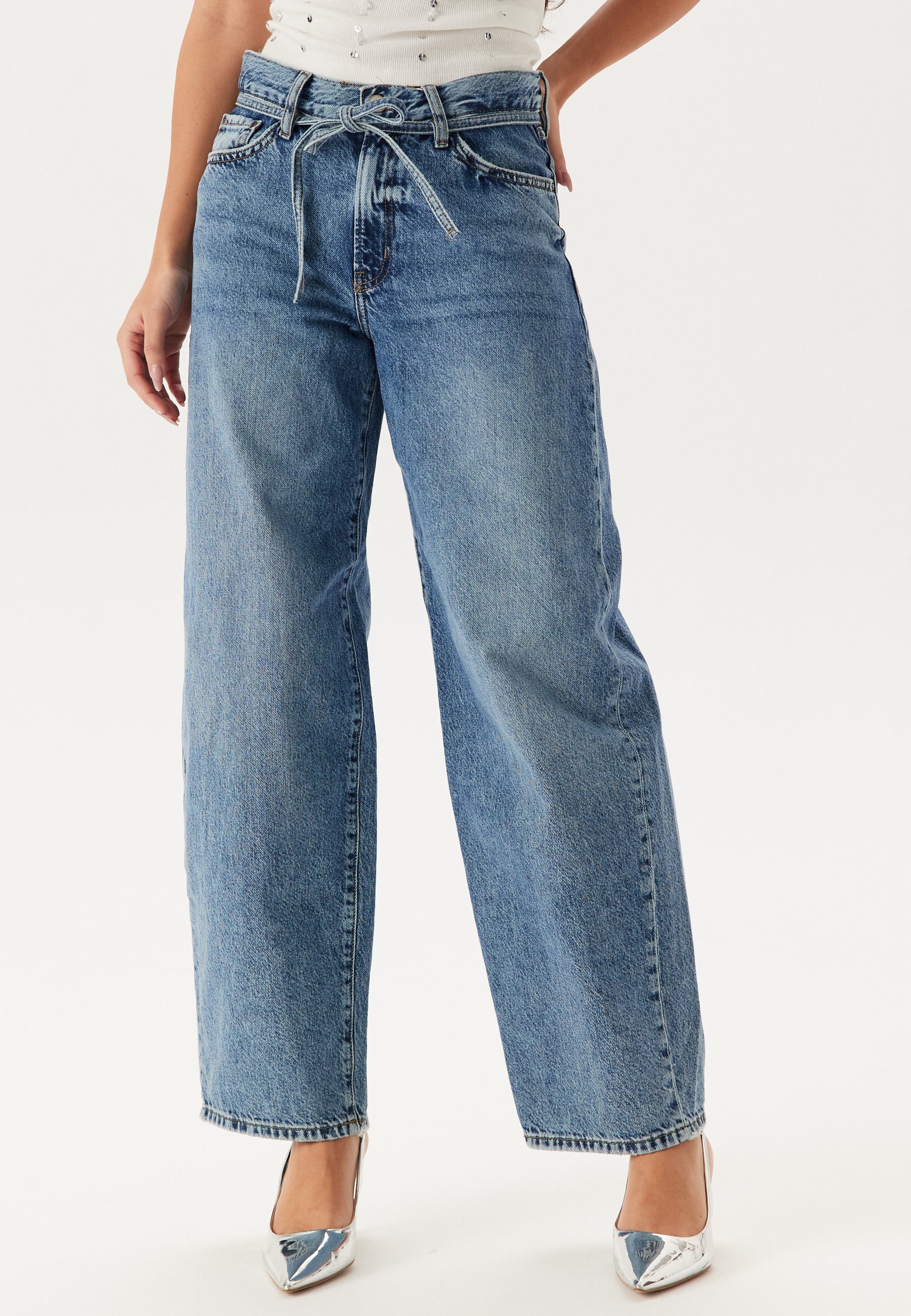 - Keskikorkea vyötärö irrotettavalla itsesolmittavalla vyöllä.