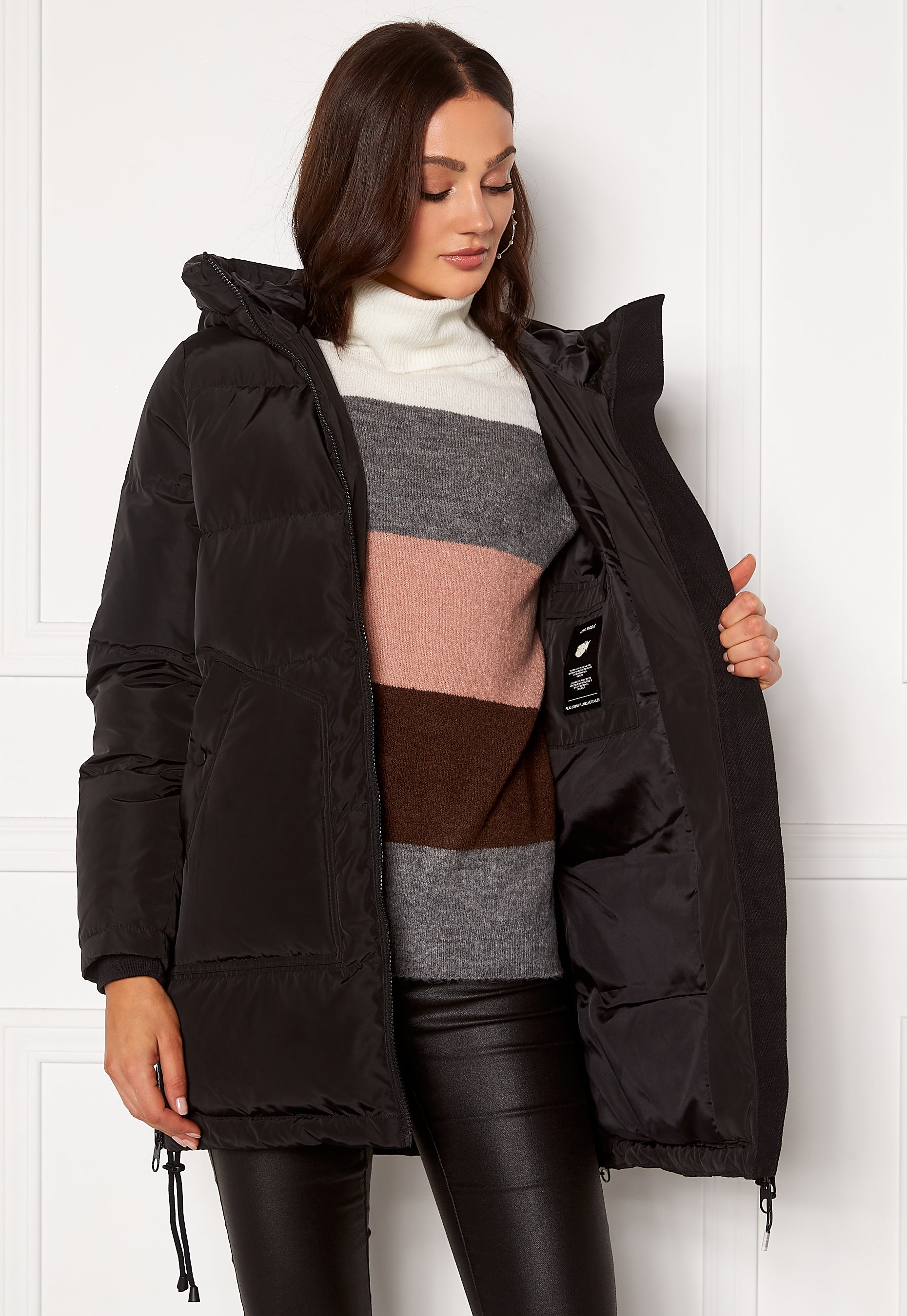 VERO MODA tyylikäs untuvatakki. Klassinen takki, jossa huppu. - Edessä vetoketju- Kaksi painonapillista etutaskua- Hihansuissa mukava resori - Yksi sisätasku- Sivuissa vetoketjut - Helmassa nauhakuja- Vasemmassa hihassa logoTakapituus olalta 82 cm koossa S. Malli on 178 cm pitkä ja käyttää kokoa S. Konepesu 30 asteessa.
