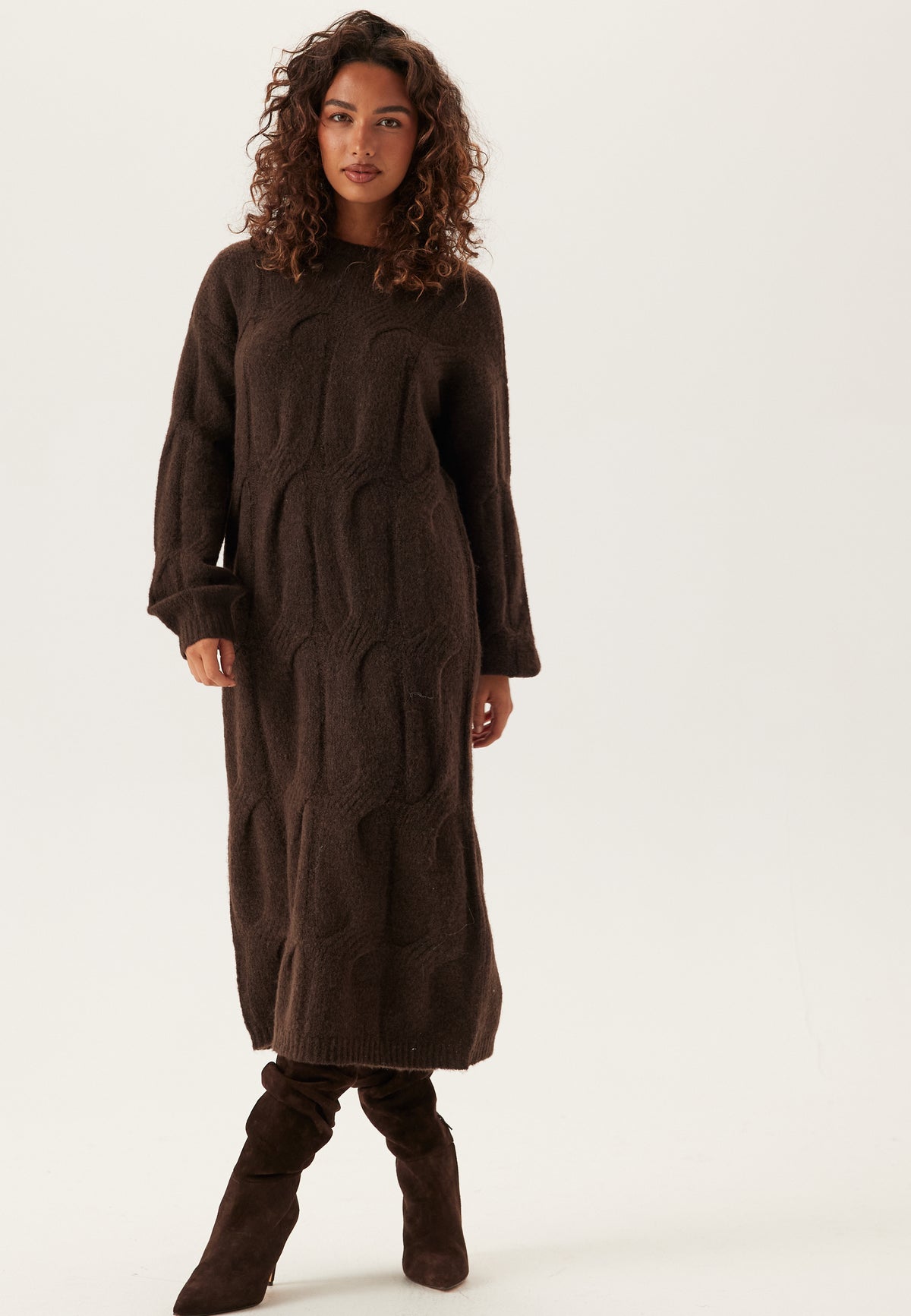 Pcjenna Ls Cable Knit Midi Dre