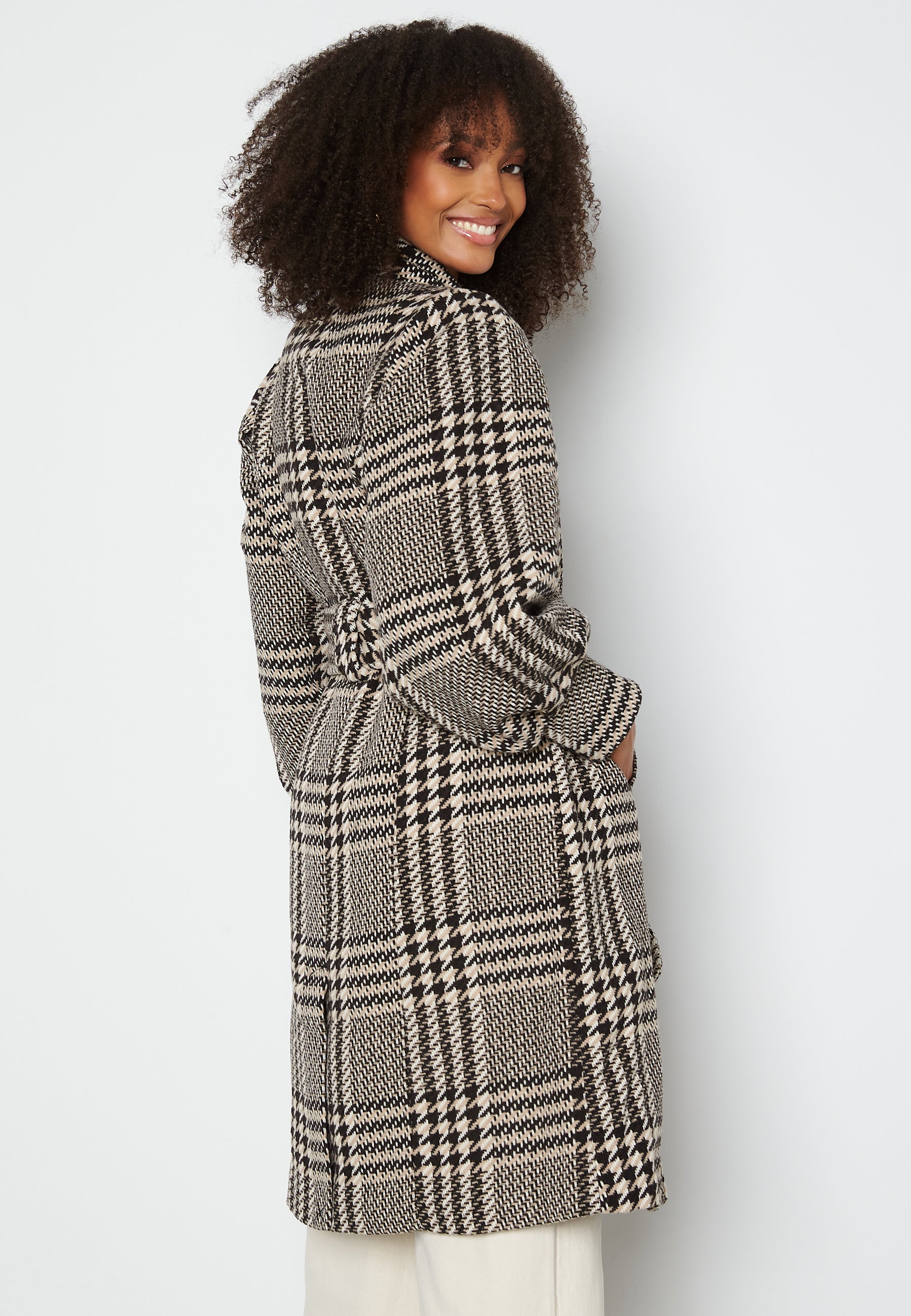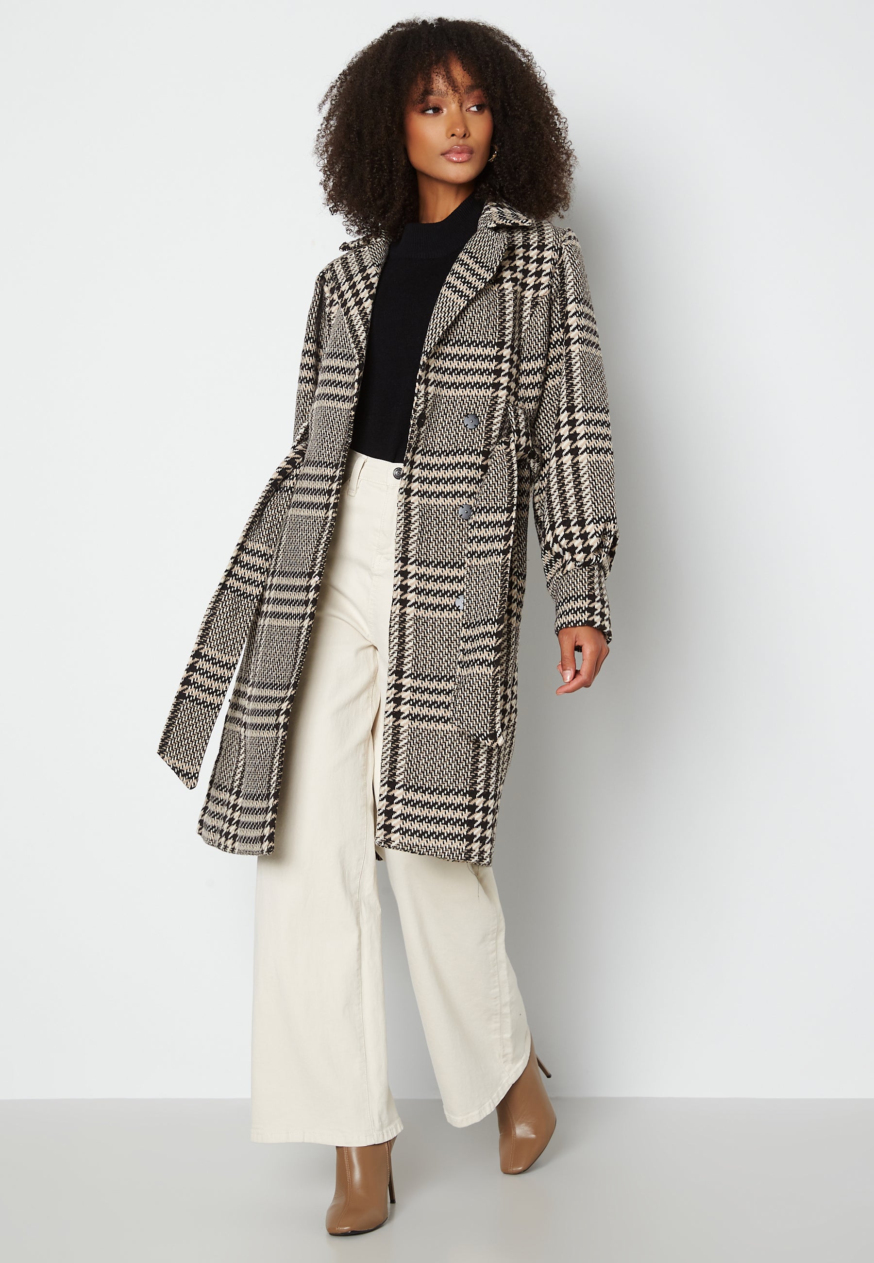 Hieno, ruudullinen takki Y.A.S-tuotemerkiltä solmunauhalla vyötäröllä.