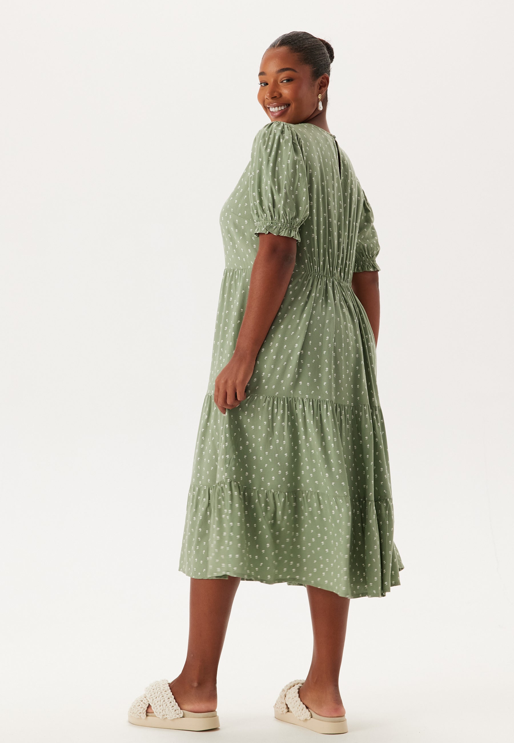 Puff Sleeve Viscose Midi Dress