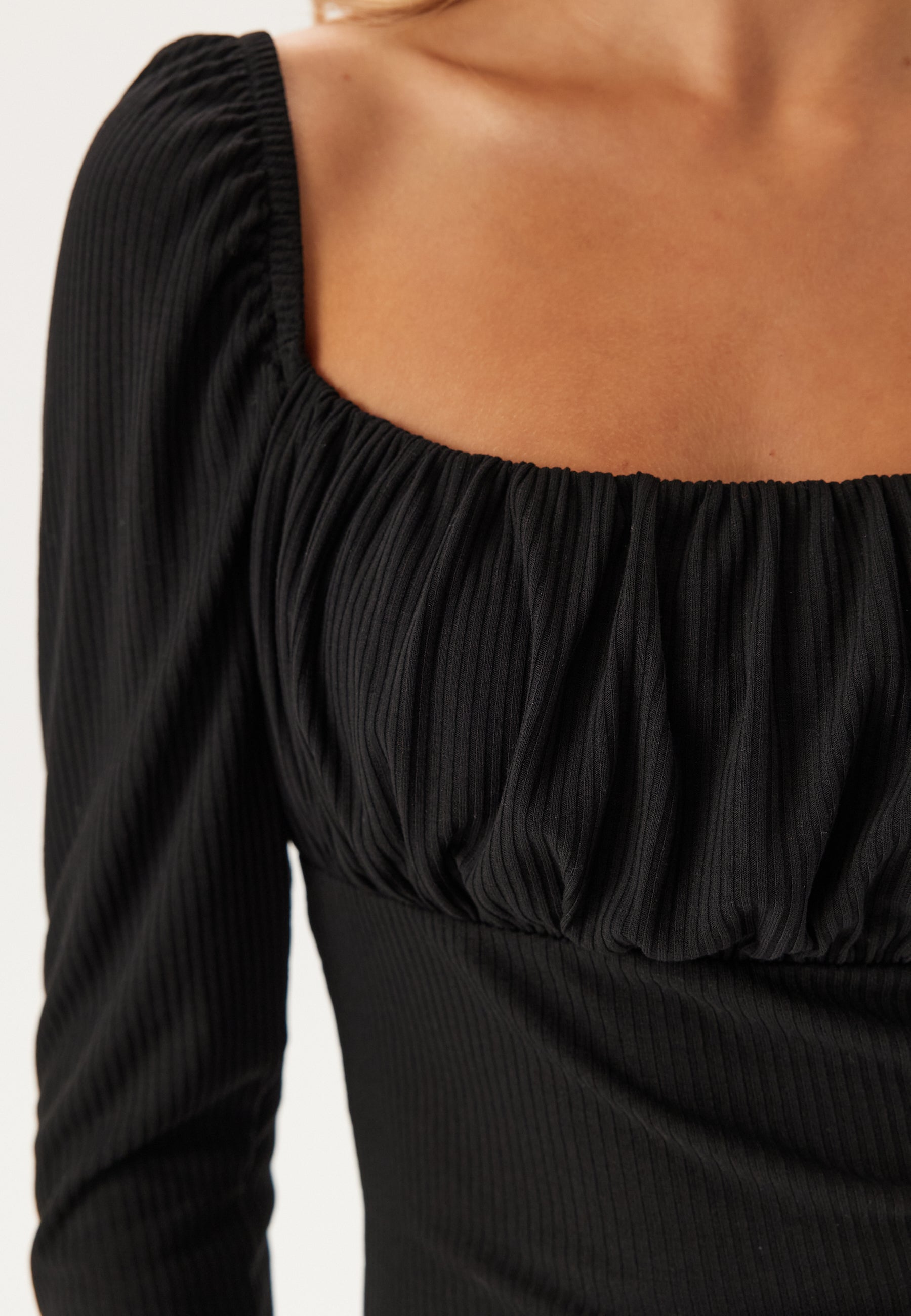 Ruched Square Neck Long Sleeve Top
