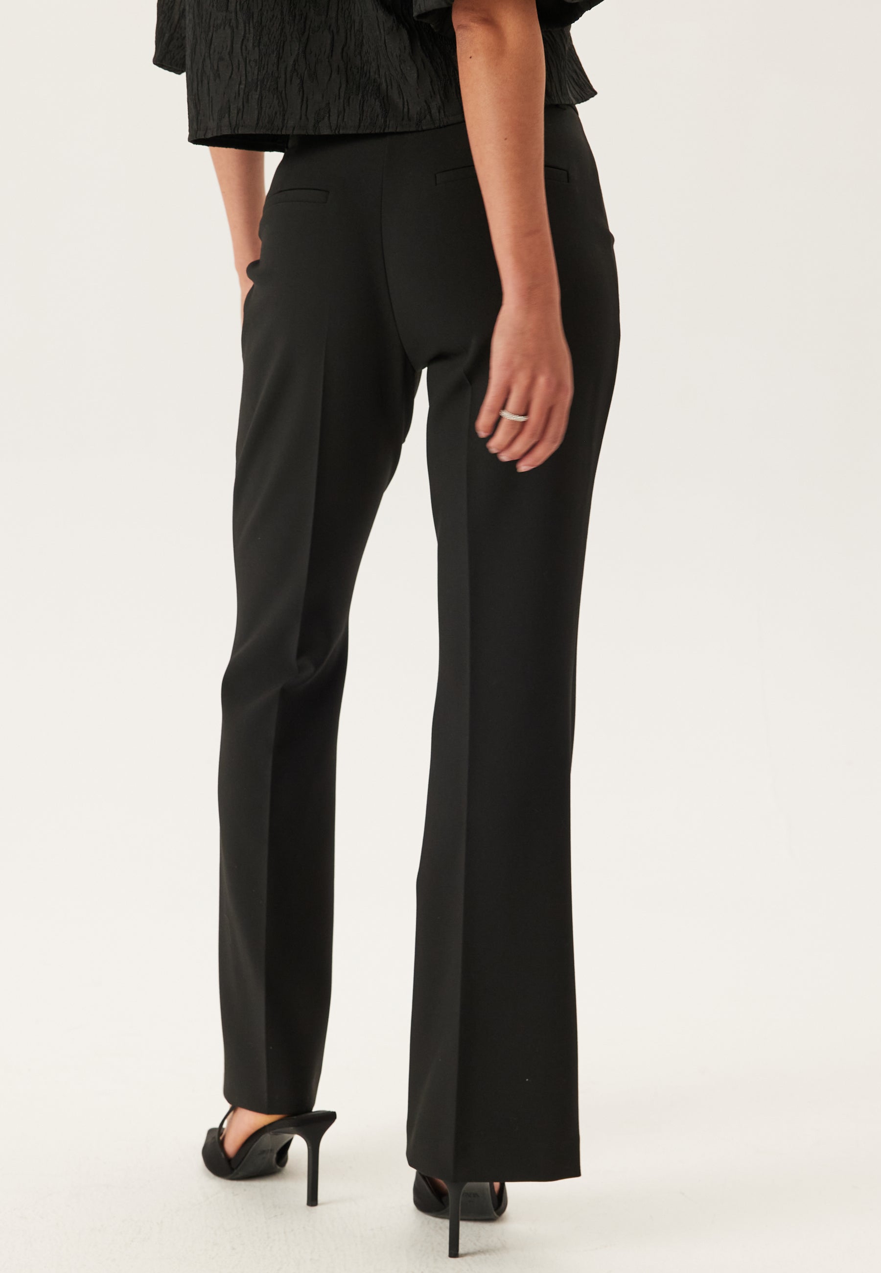 - Slim fit -mallinen istuvuus levenevällä jalalla