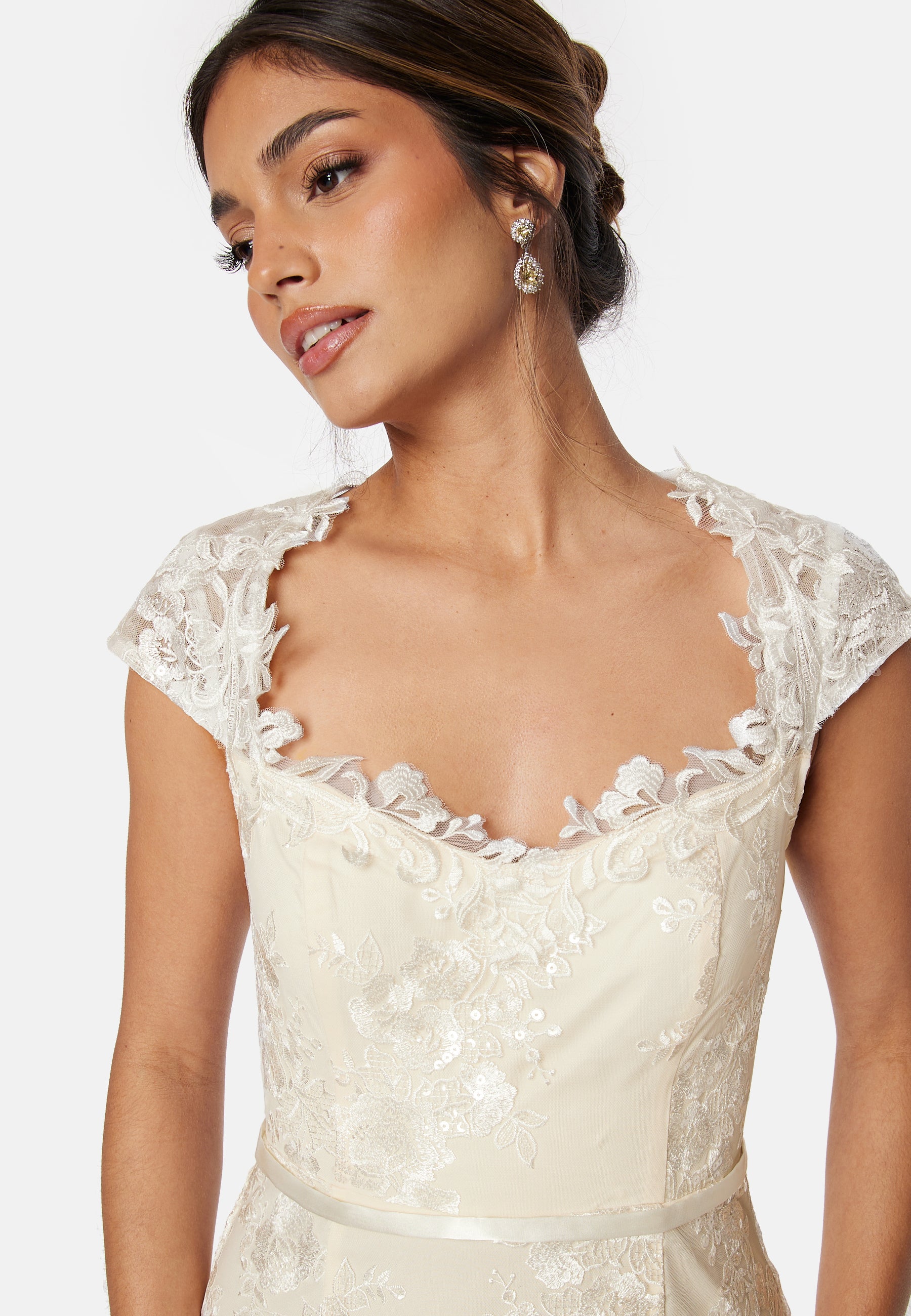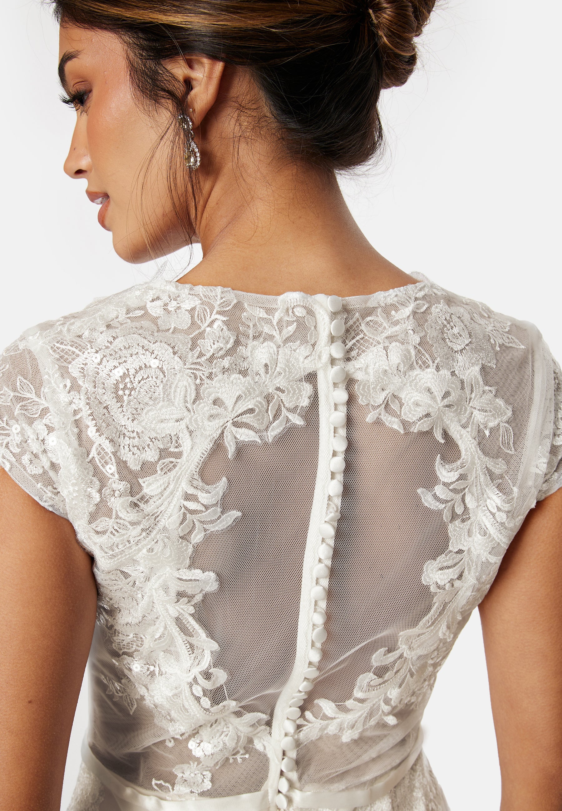 Pitsikoristeltu, maaginen hääpuku Bubbleroom Occasion-tuotemerkiltä.