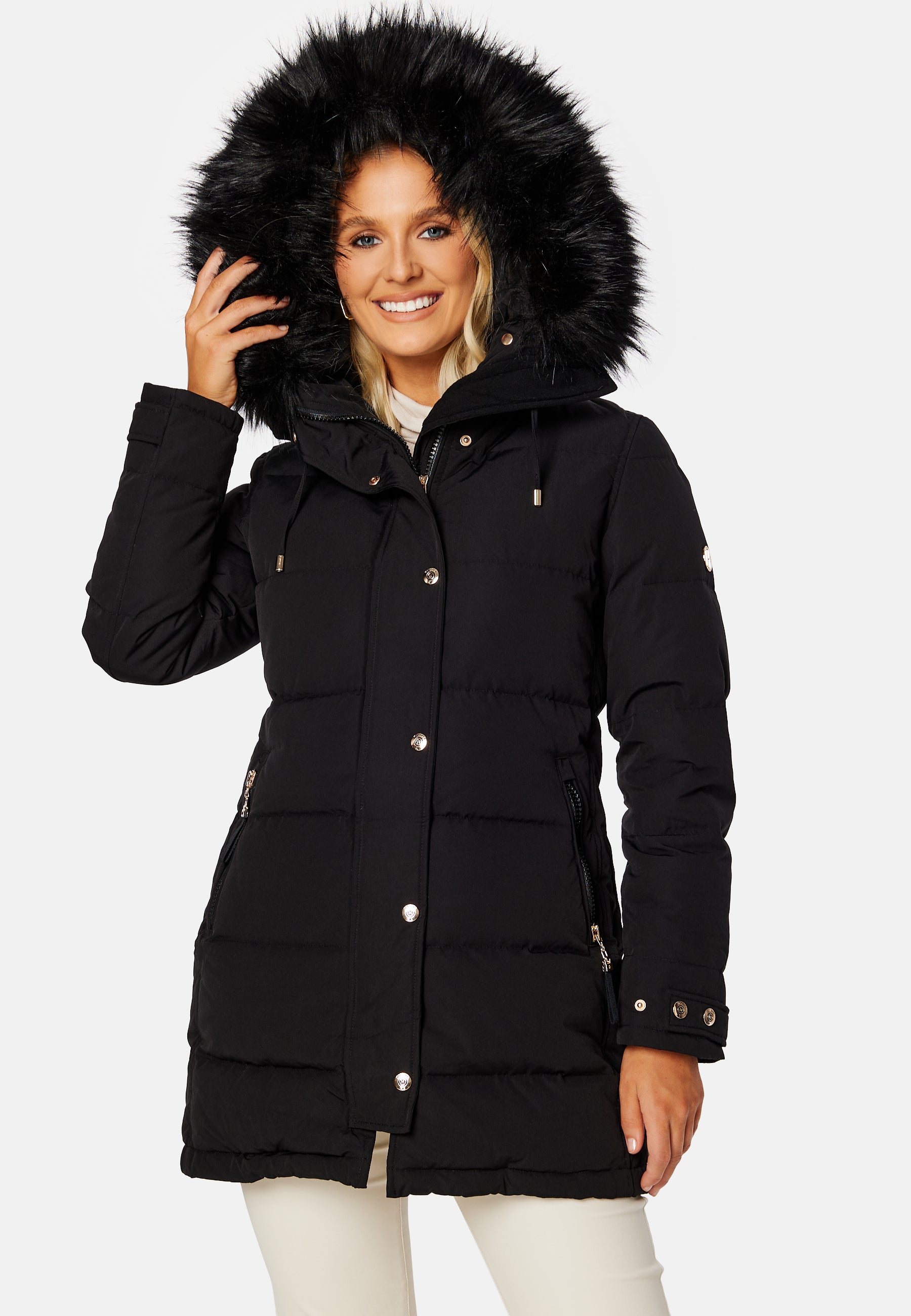 - Irrotettava tekoturkisreunus hupussa.