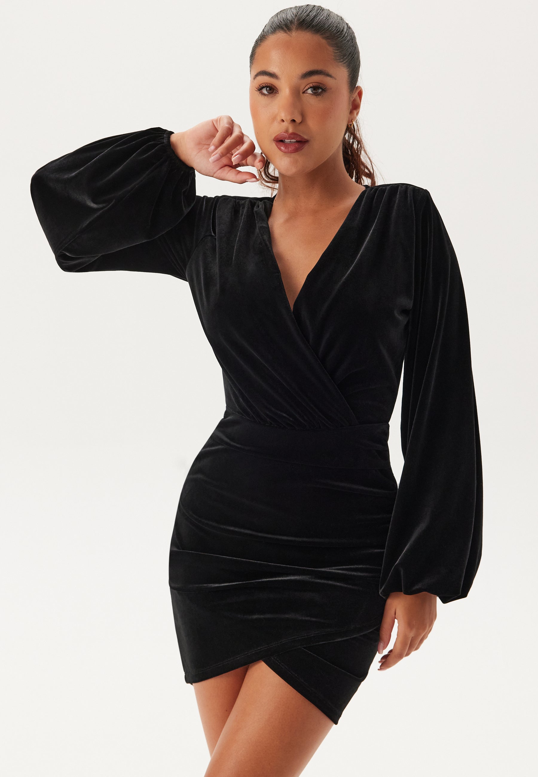 Flirttaileva mekko sametista Bubbleroom Occasion-tuotemerkiltä.