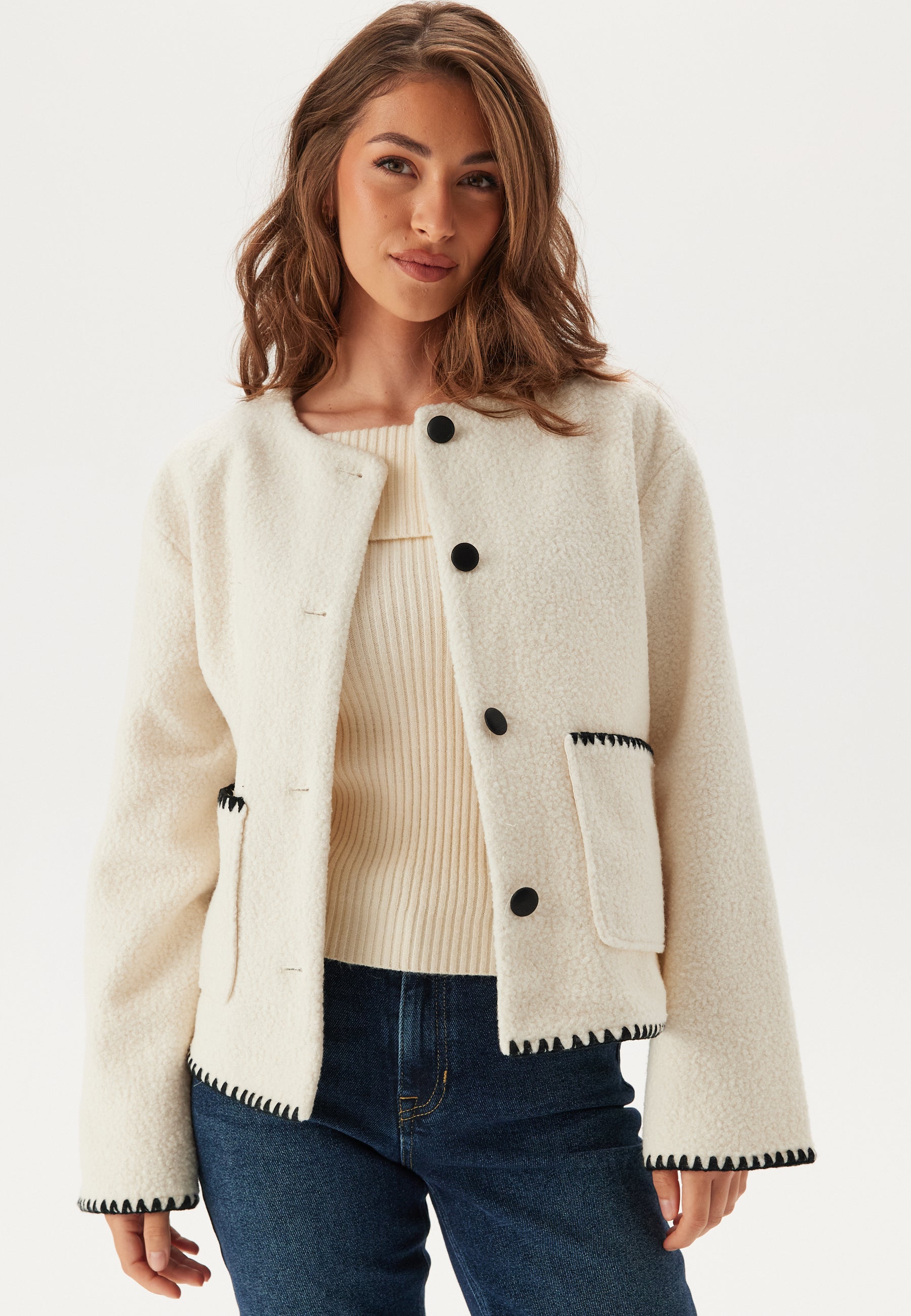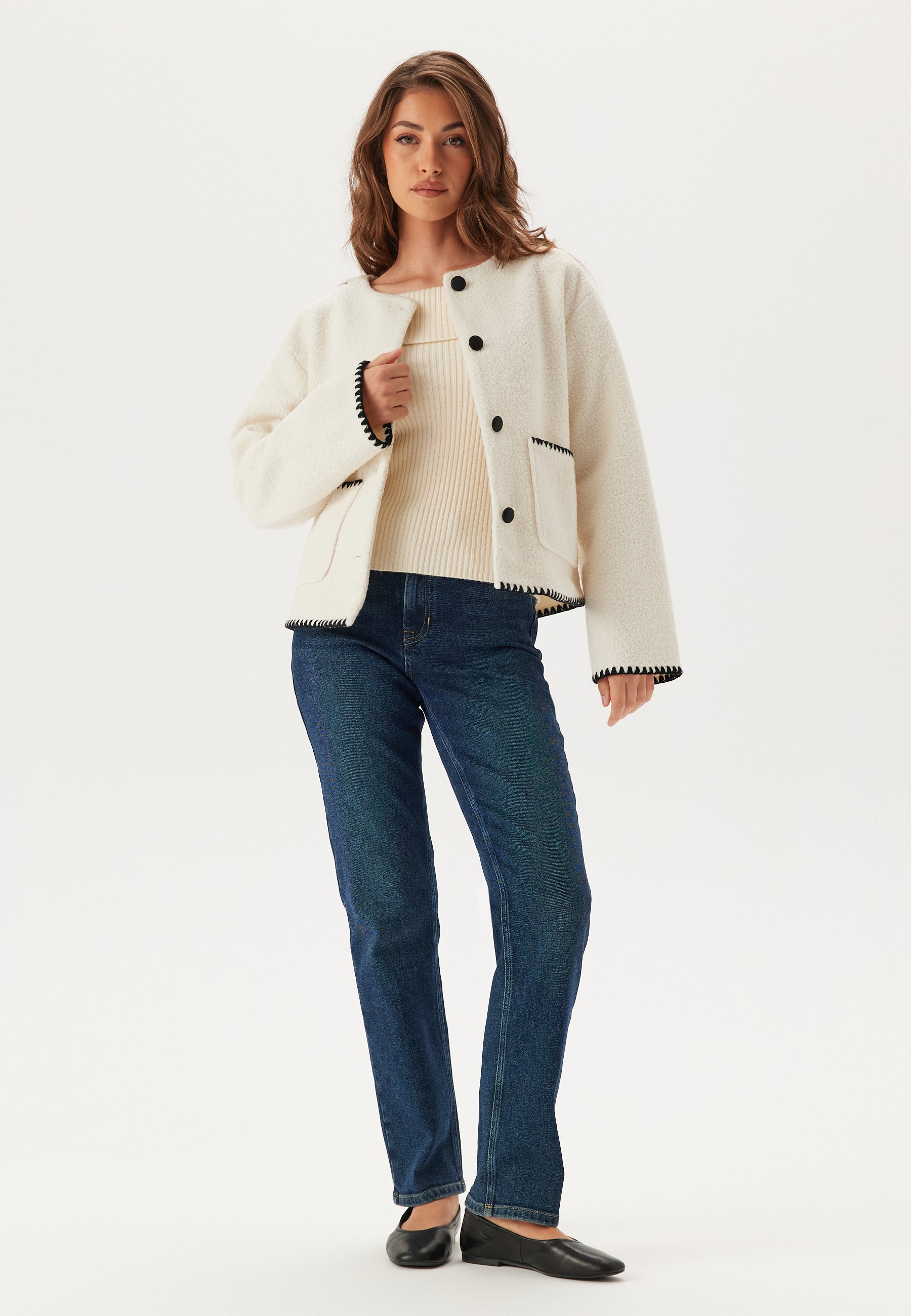 - Koristeelliset saumat kontrastivärisellä värillä.