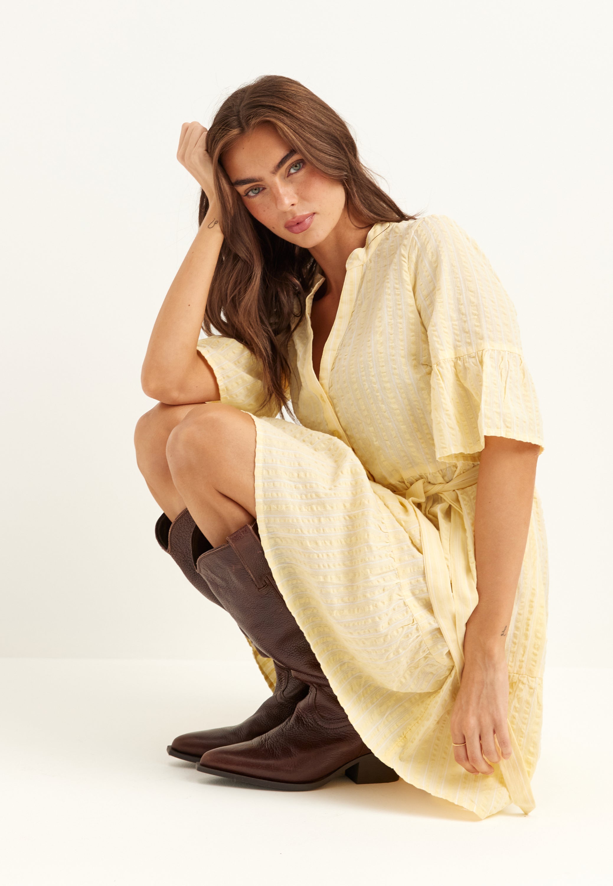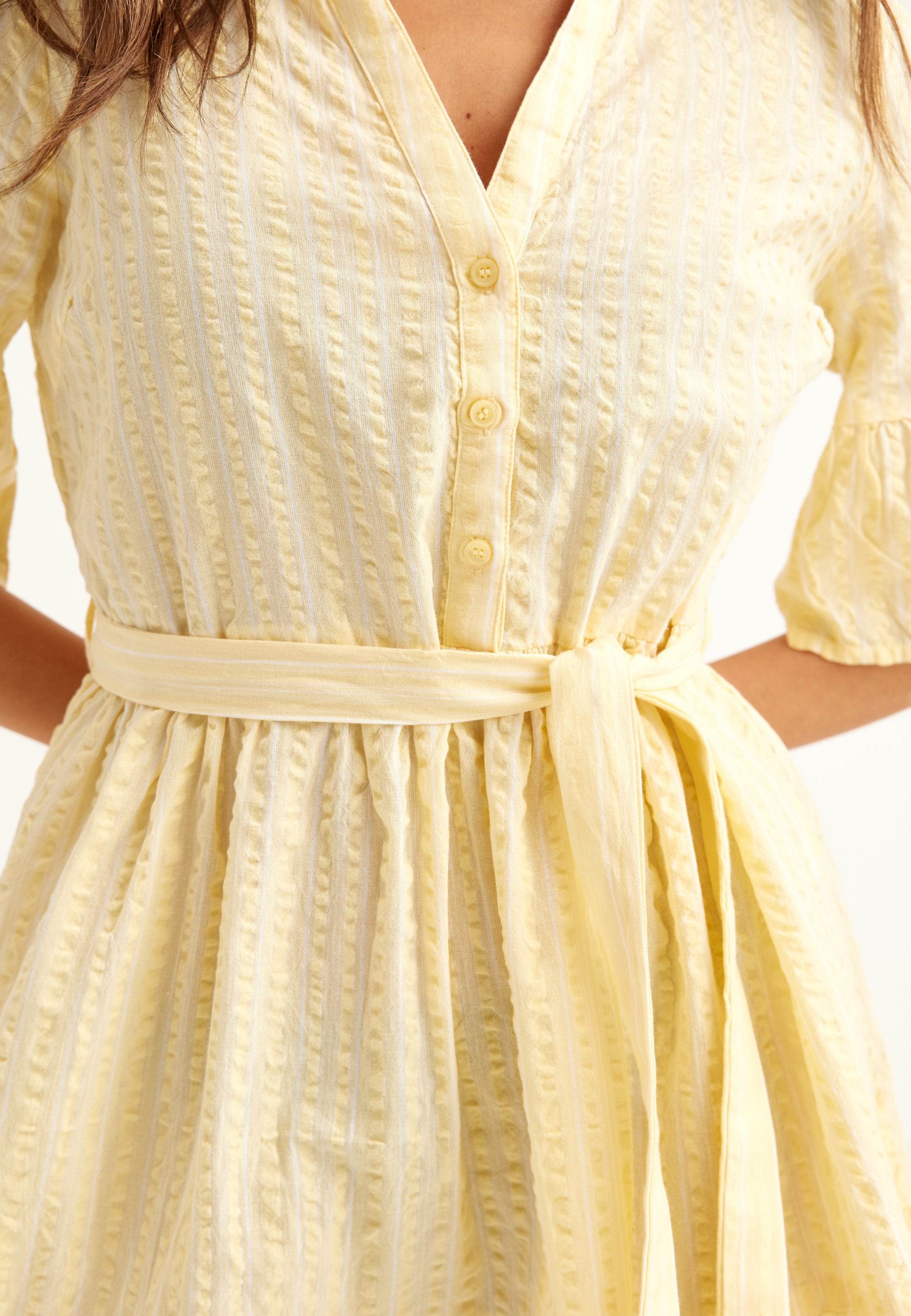 - Korostettu vyötärö irrotettavalla itsesolmittavalla vyöllä
