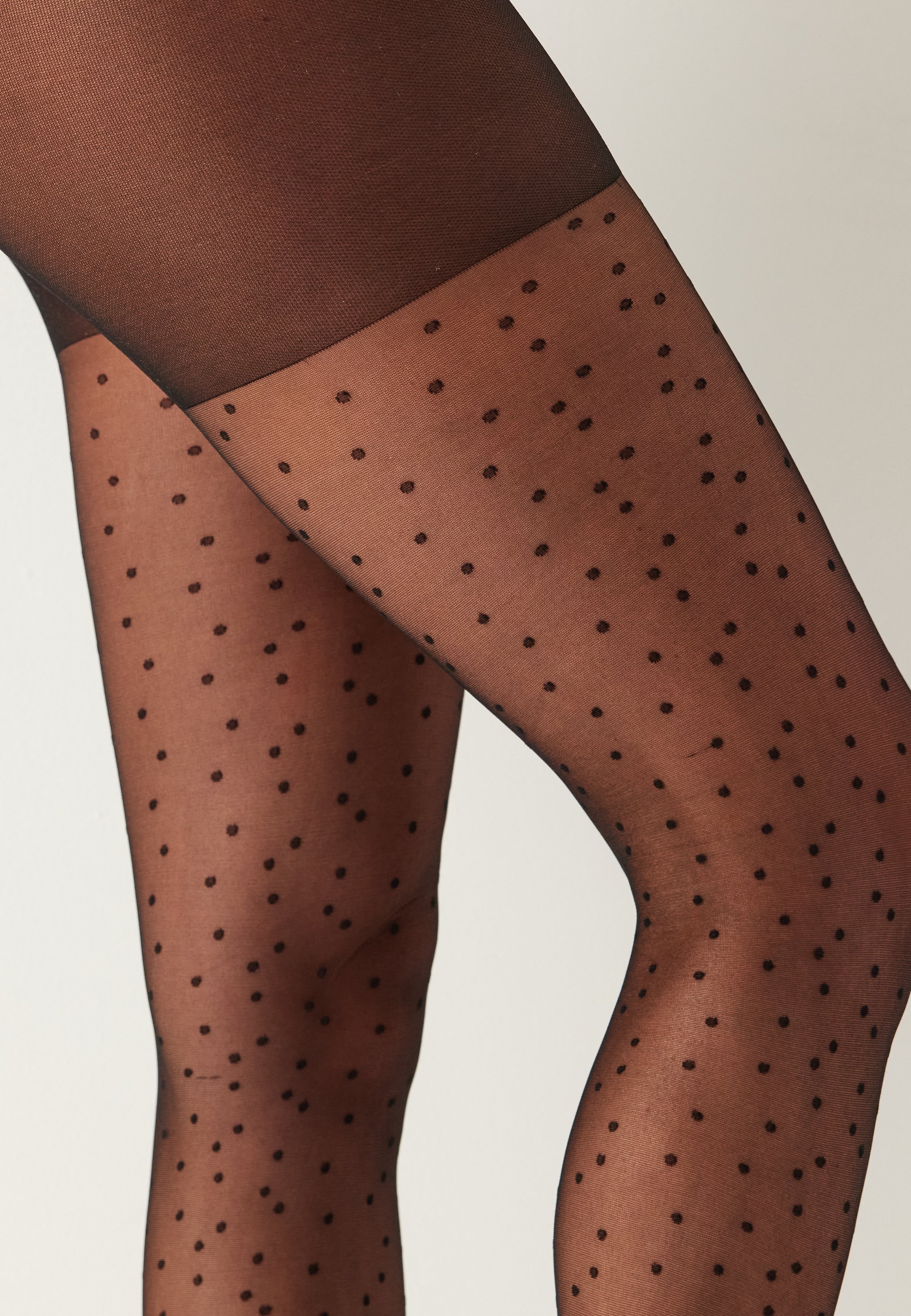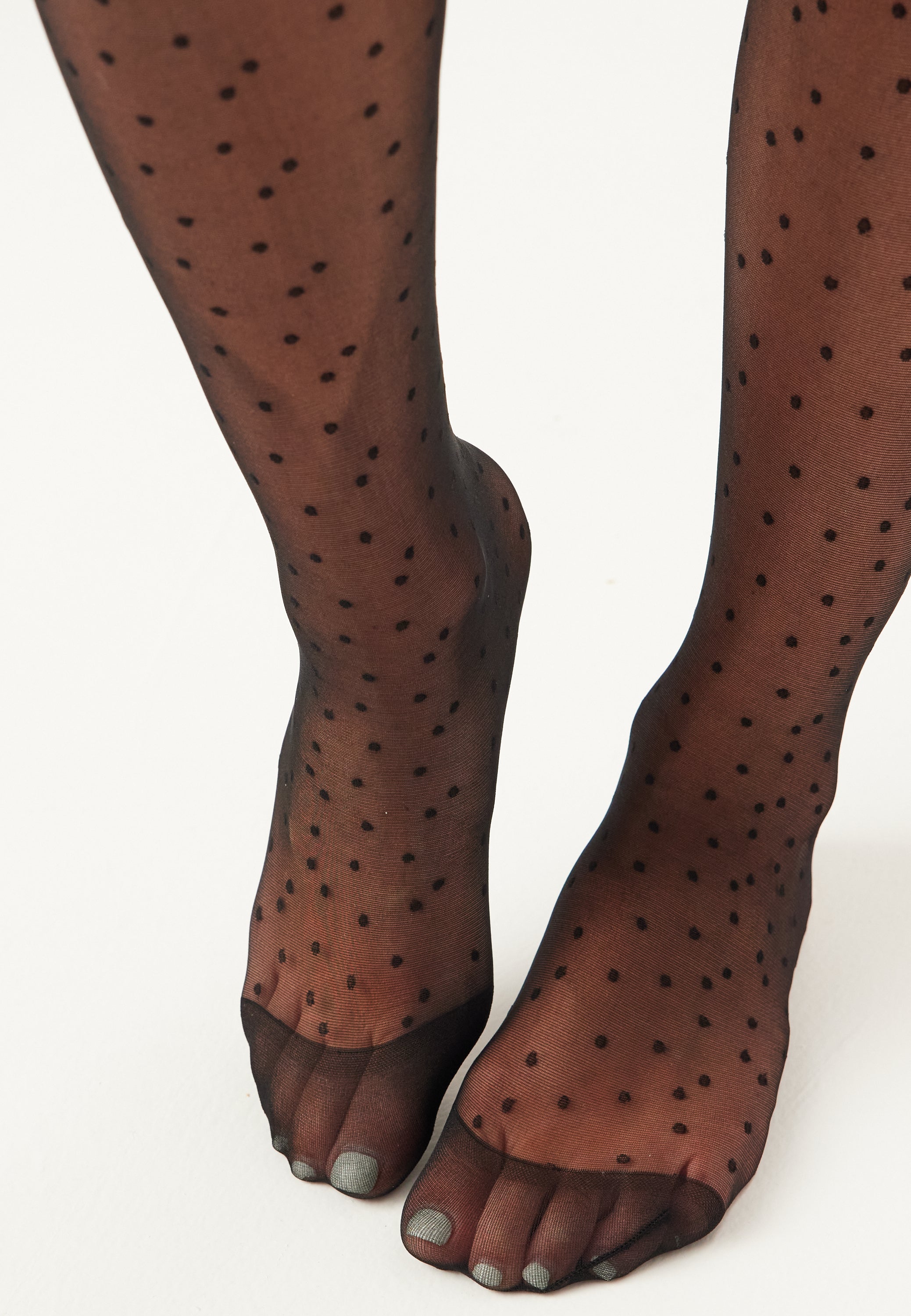 Ne näyttävät siisteiltä jalassa ja toimivat erityisen hyvin korkojen, loafereiden tai nilkkureiden kanssa silloin, kun haluat jotain kiinnostavampaa kuin tavalliset mustat sukkahousut. Tässä parissa parasta on herkän läpikuultavuuden ja graafisten pilkkujen tasapaino, joten saat näyttävän ilmeen, joka on silti helppo pukea.