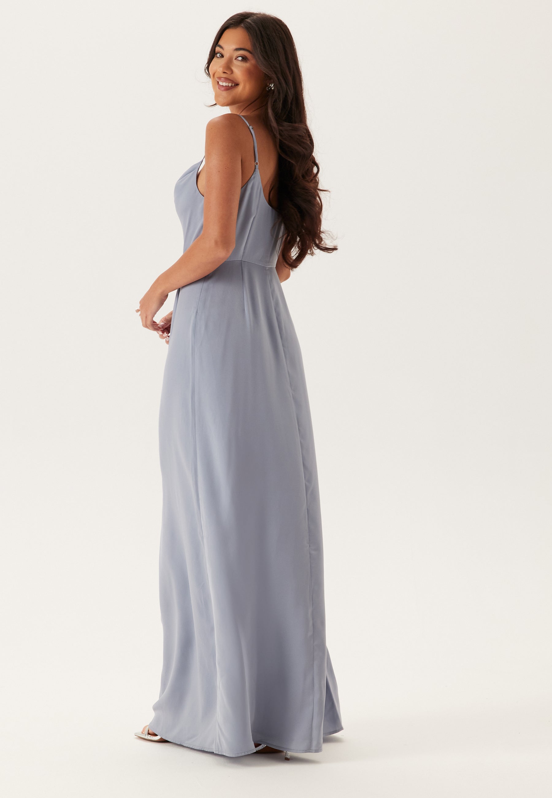 Waterfall Slit Satin Gown
