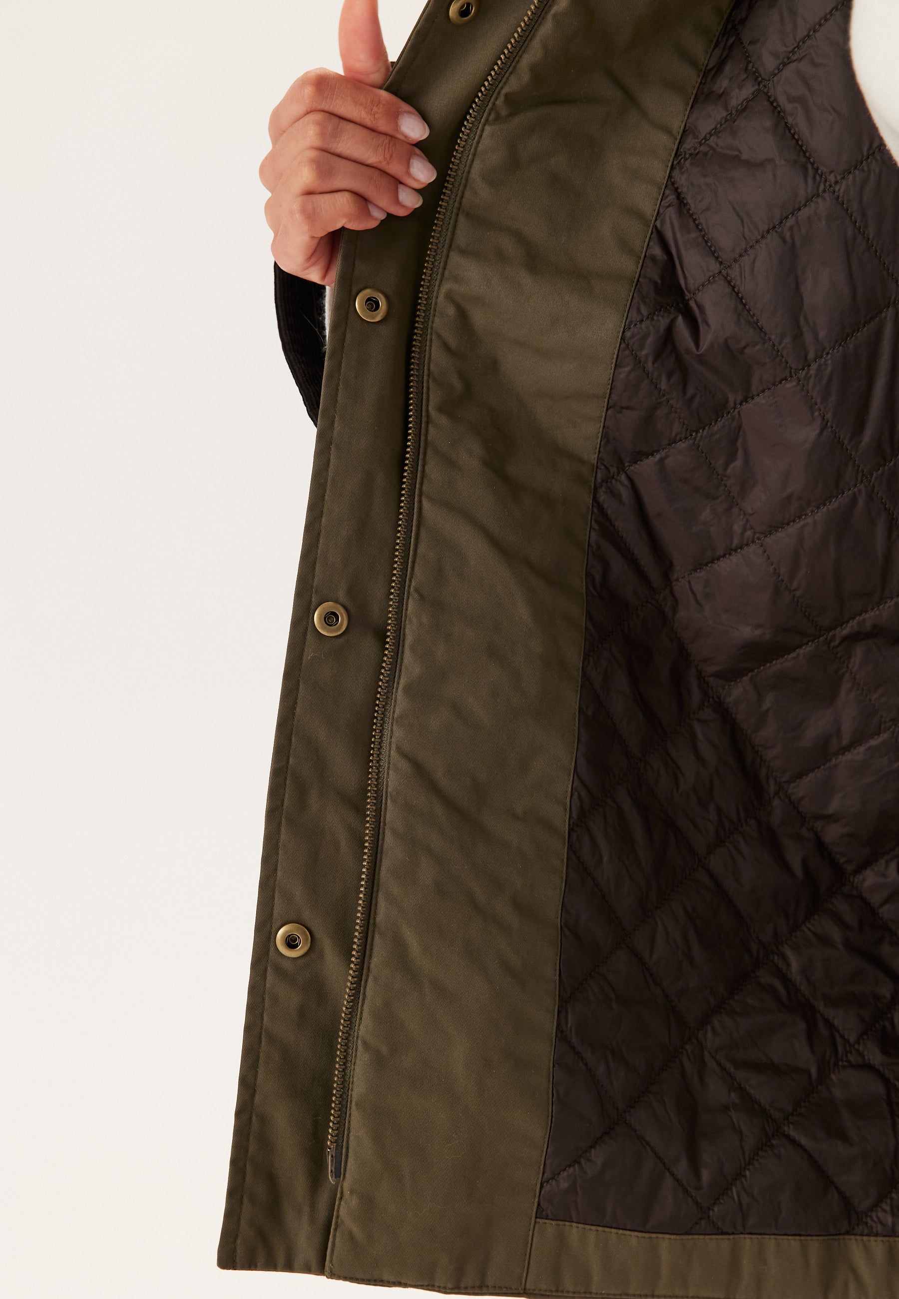 Ulkomateriaali: 63% Puuvilla, 37% Polyamidi. Vuori: 100% Kierrätyskuitupolyamidi. Toppaus: 100% Kierrätyskuitupolyesteri.