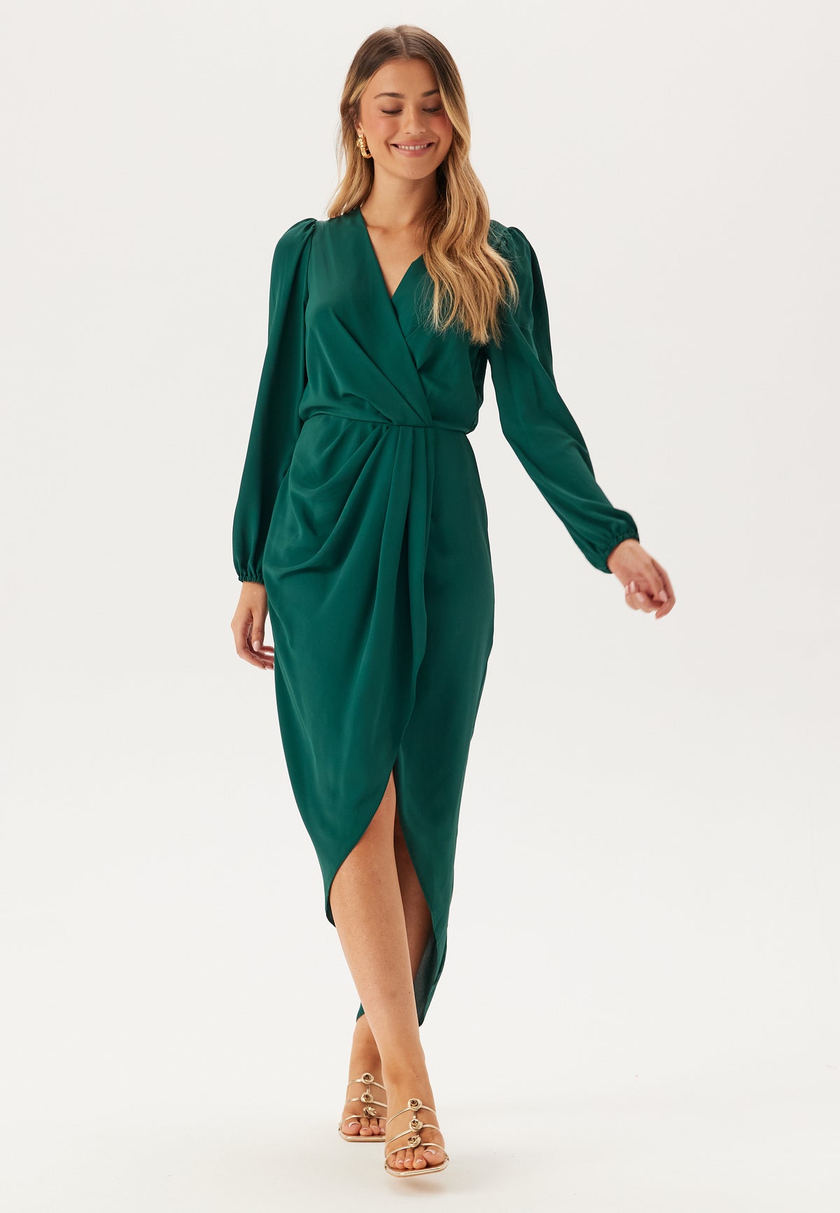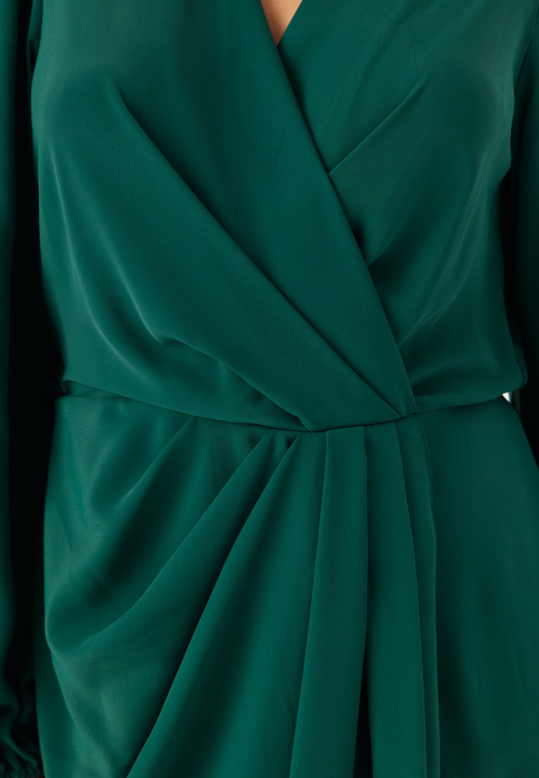 - V-ringad halsringning med omlottdesign.