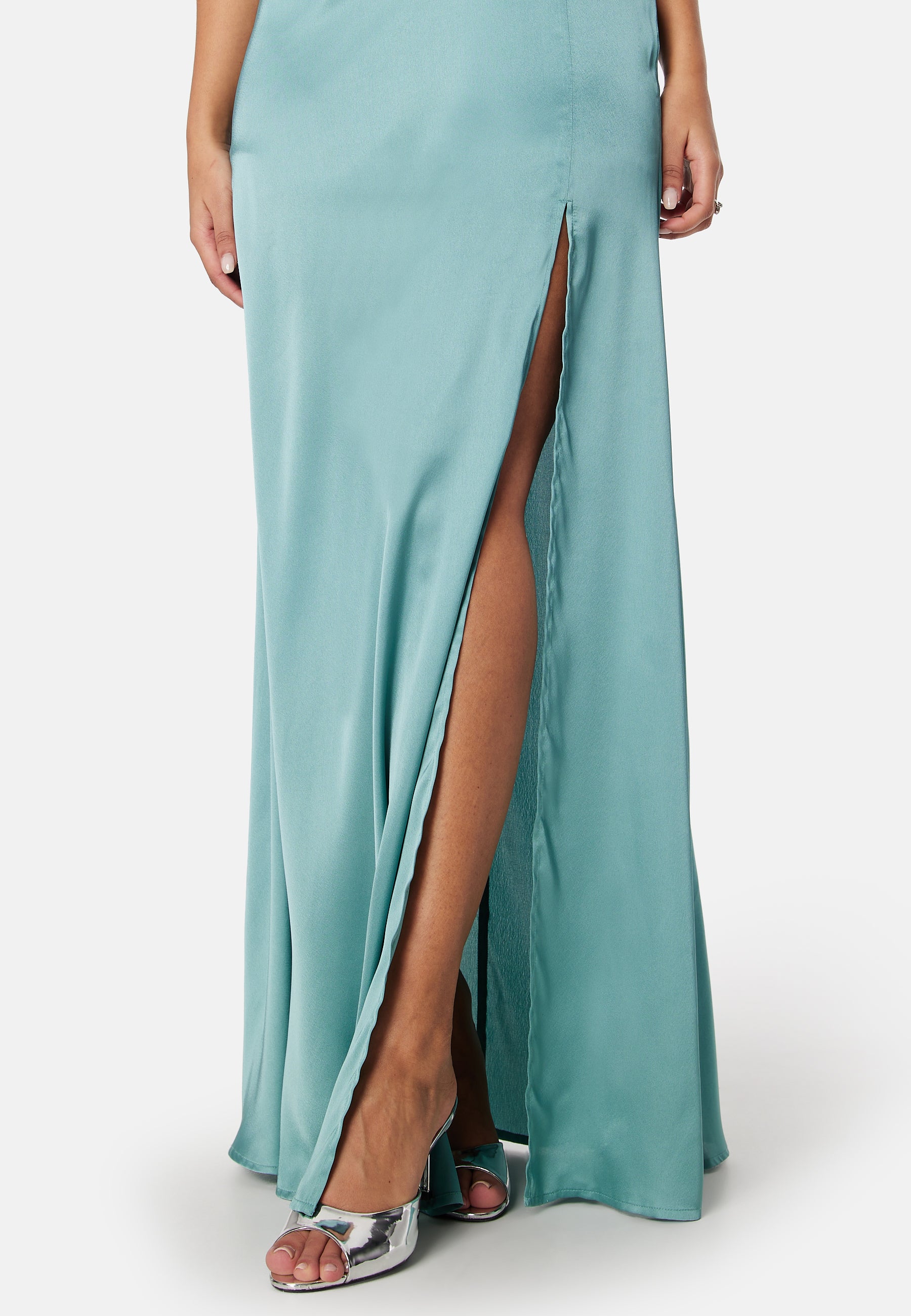 • Elegant klänning i satin från Bubbleroom Occasion med en öppen rygg Den har en feminin drapering