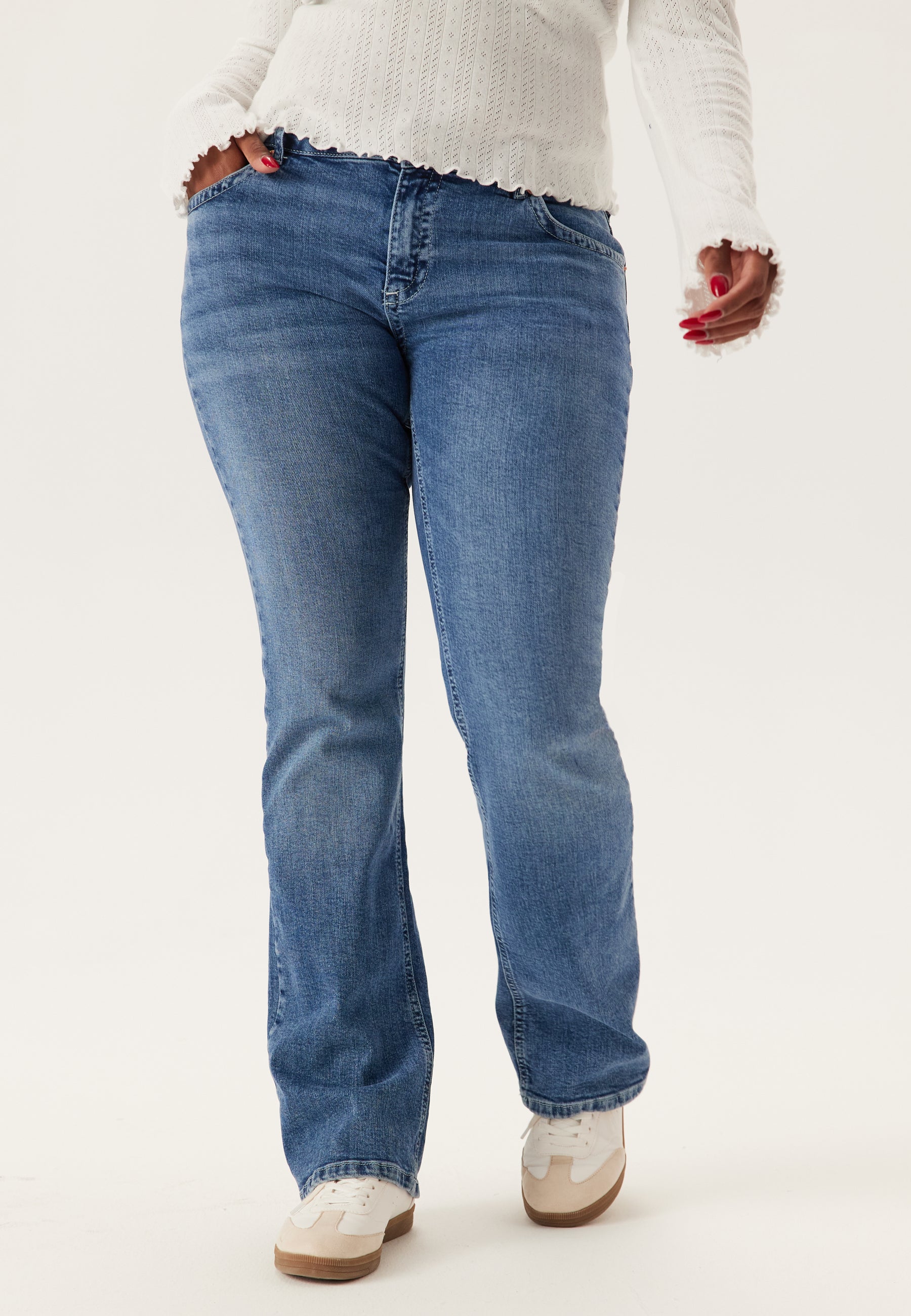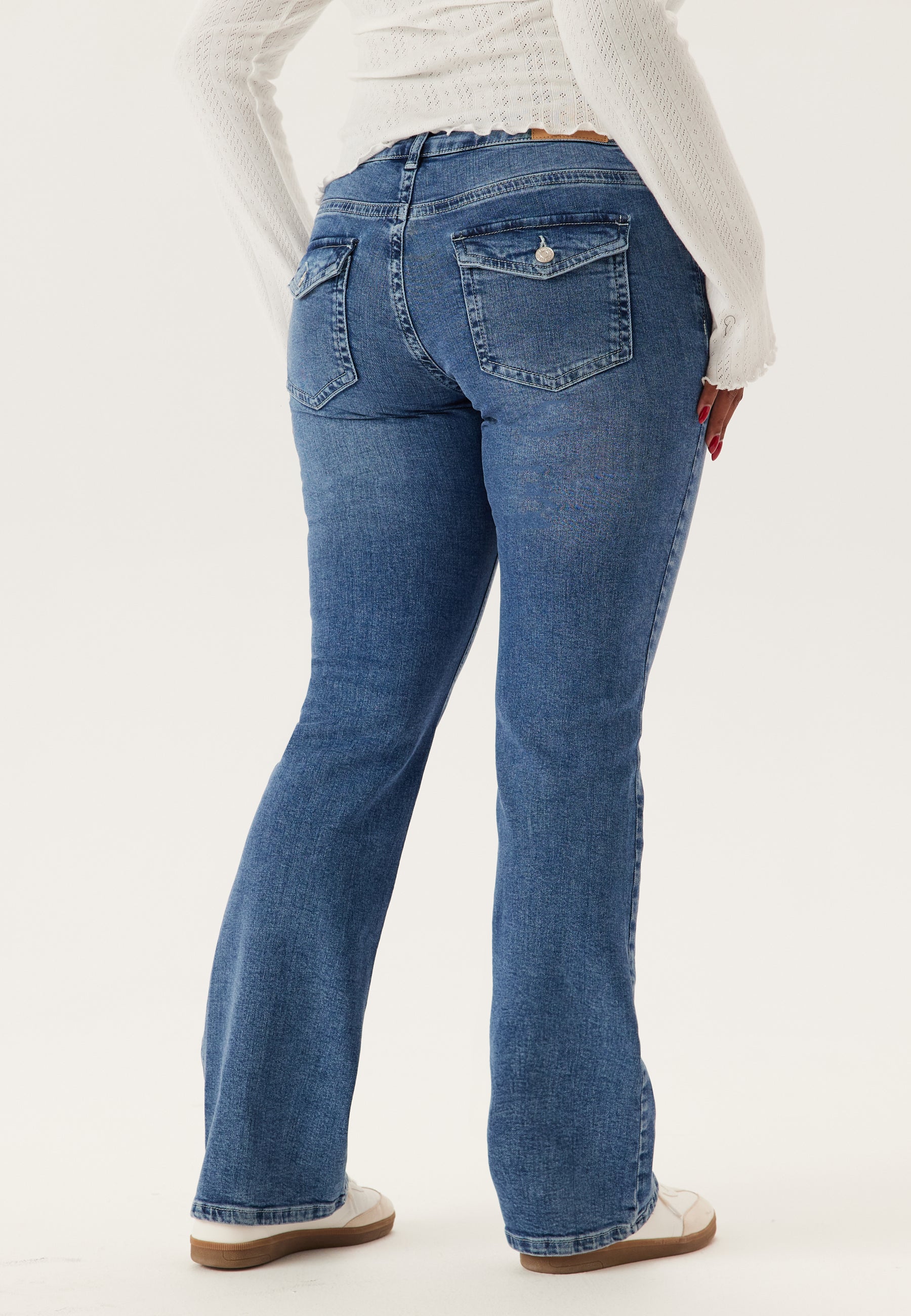 - Utsvängd, lätt stretchig passform bootcut