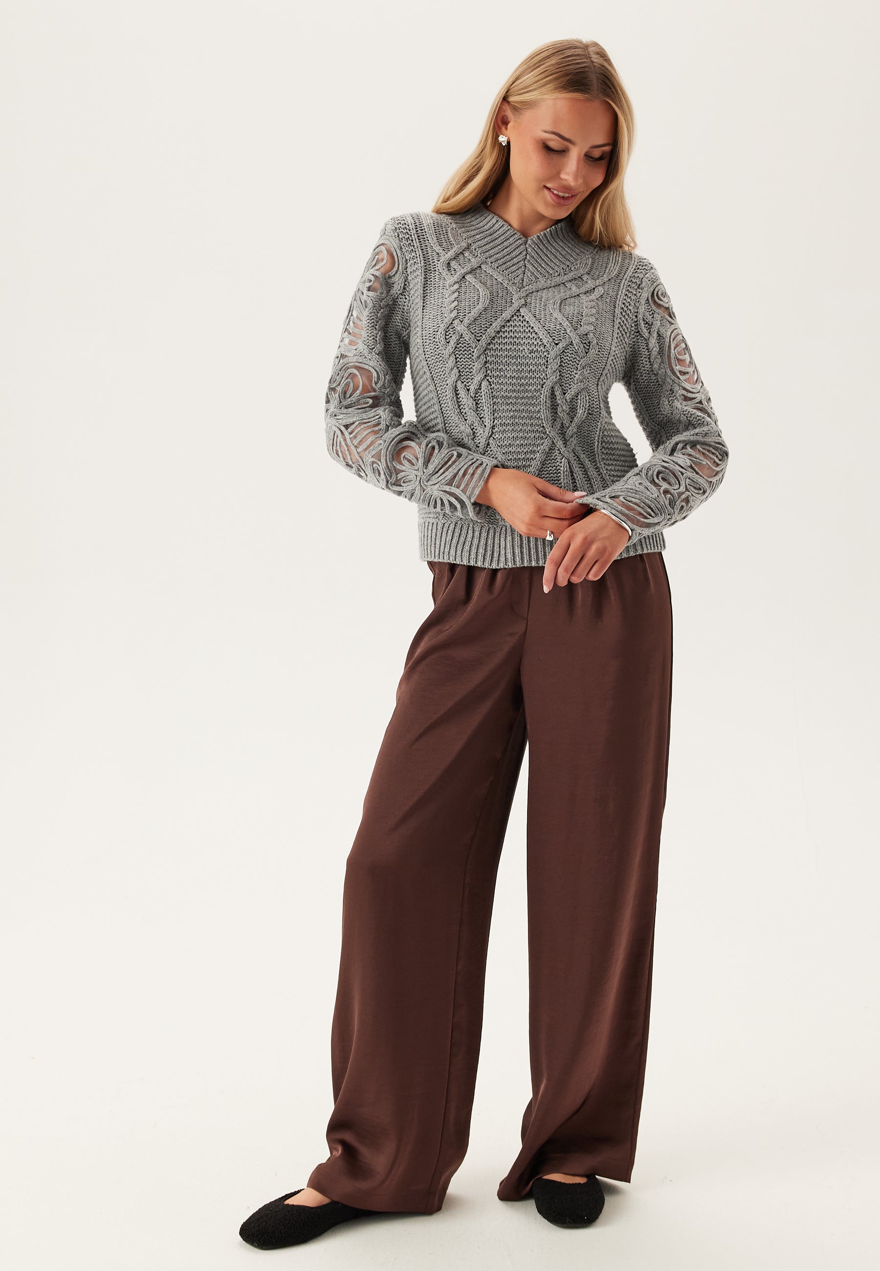 - Meshtyg med ett stickat mönster på ärmarna